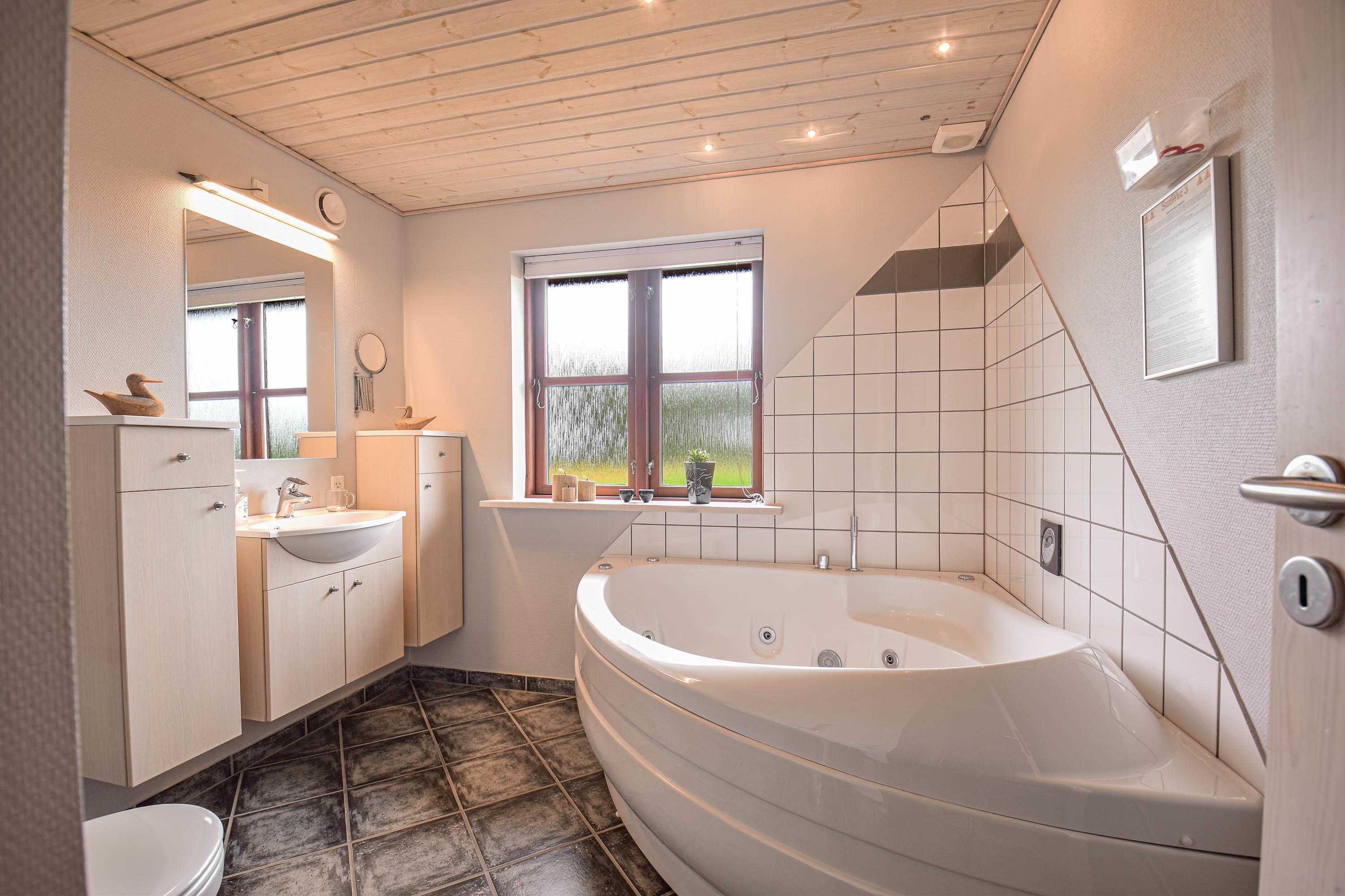 Aufteilung: Großer Eingangsflur. Offener Wohn-/Essbereich mit integrierter, moderner Küche und schönem Kaminofen. Insgesamt 3 Schlafzimmer, zwei mit Doppelbett und eines mit Etagenbetten. 2 schicke Bäder, eines davon mit Whirlpool und Sauna. Holzfußboden in den Wohn- und Schlafräumen, Fliesenboden in Küche und Bädern, hier mit Fußbodenheizung. Technikraum mit Edelstahlspüle, das freut die Angler z.B. für das Reinigen ihres Fangs.