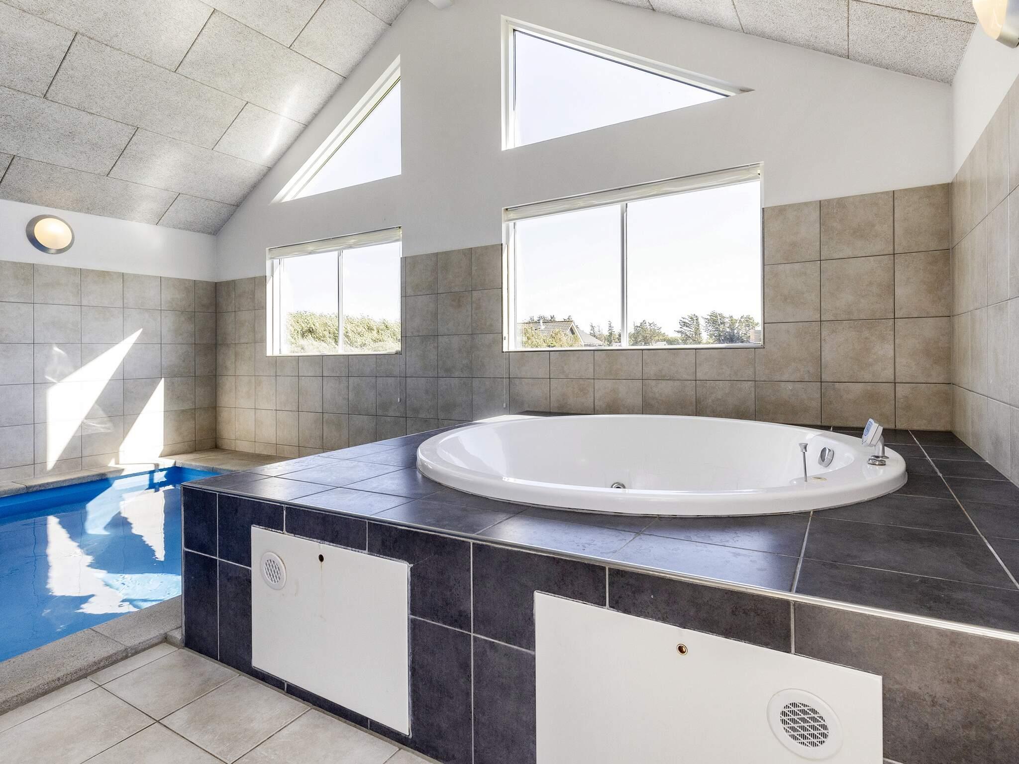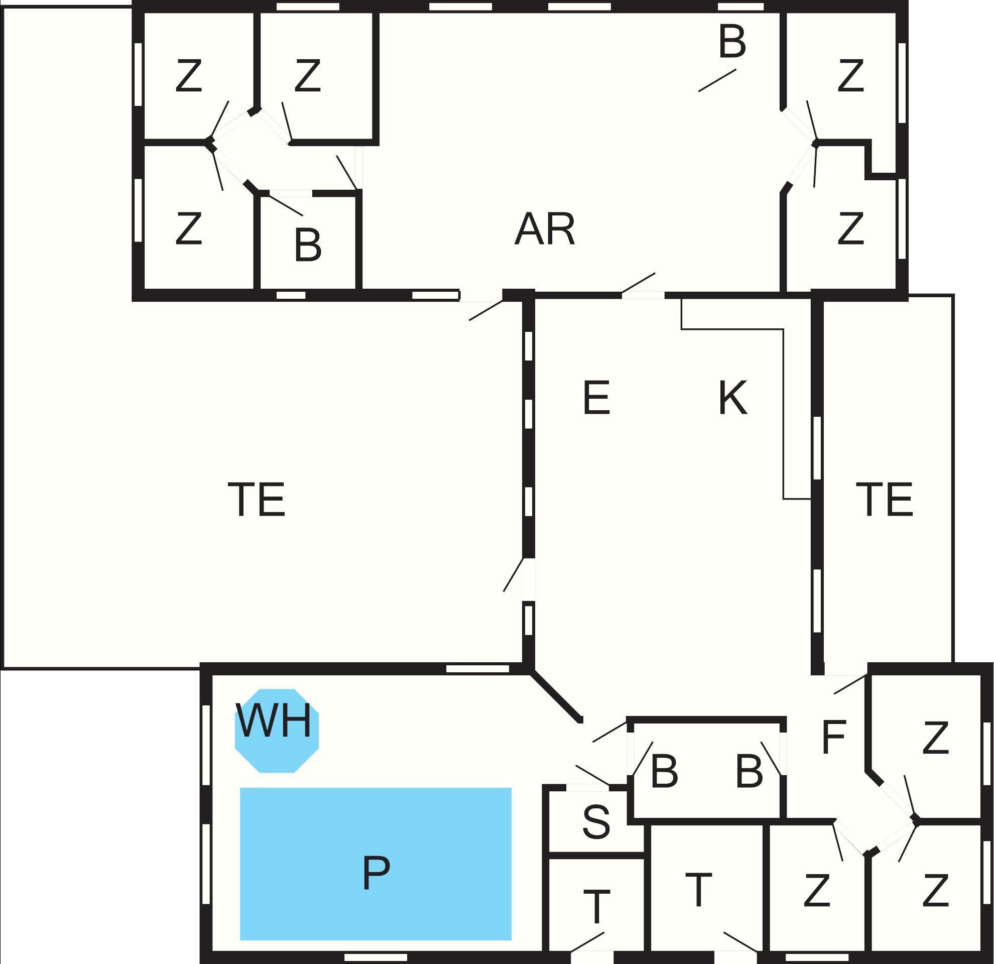 Dieses Feriendomizil ist besonders geräumig und gut aufgeteilt. Es hat insgesamt acht Schlafzimmer, verteilt auf drei separate Schlafbereiche mit je einem Badezimmer. Zudem gibt es ein viertes Badezimmer in Verbindung mit dem Poolbereich. Alle drei Bäder sind mit angenehmer Fußbodenheizung ausgestattet. Wickeltisch und Babybadewanne ebenfalls vorhanden. Außerdem gibt es oben im Dachgeschoss zwei offene Schlafböden (Hems) mit insgesamt vier weiteren Schlafplätzen.