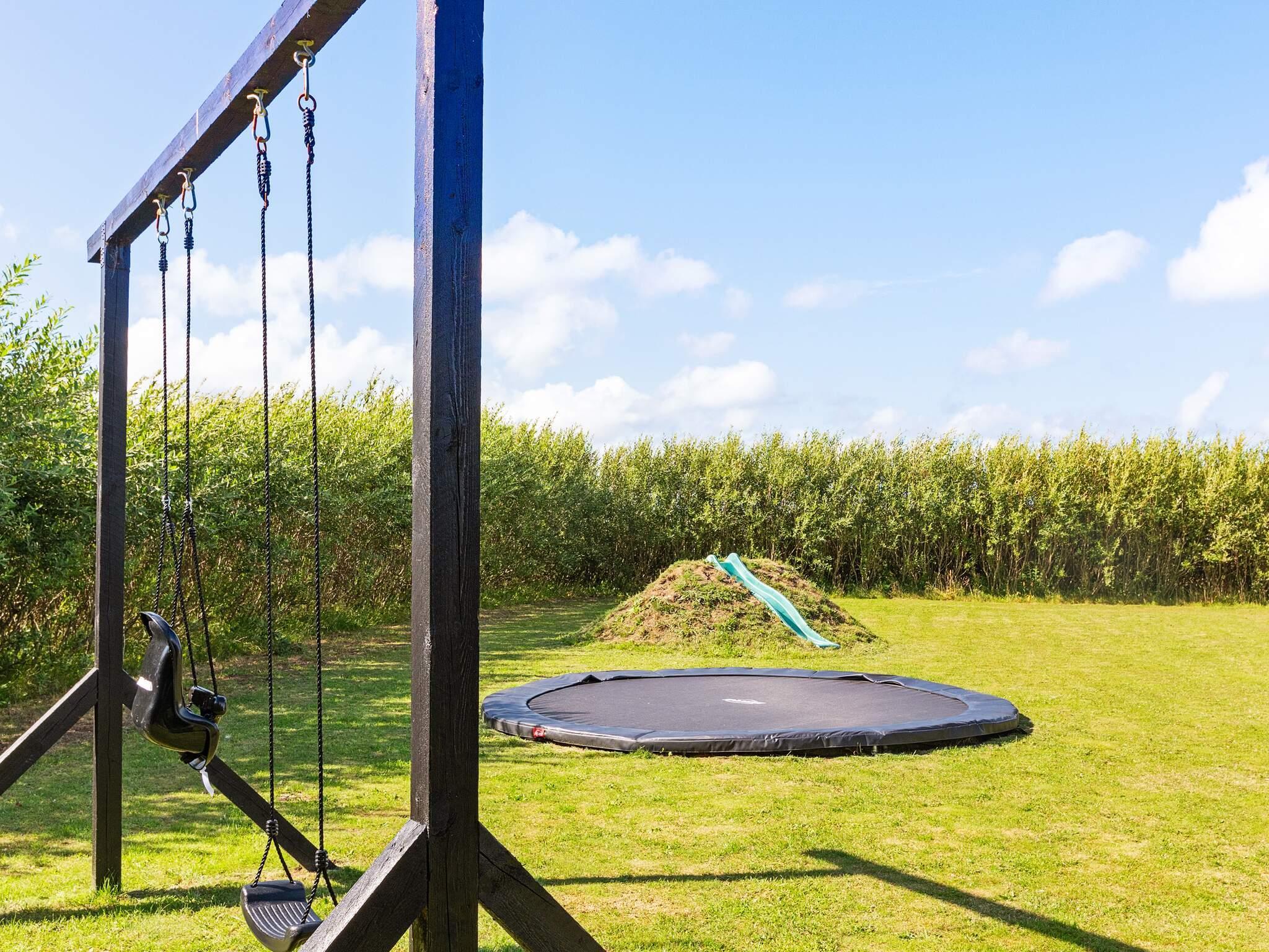 Das Ferienhaus bietet für das Familienleben im Inneren einen Küchen-/Wohnbereich mit Essecke. Außerdem stehen vier große Schlafzimmer, zwei Bäder und ein praktischer Hauswirtschaftsraum bereit. TV-Kanäle können über Apple TV gestreamt werden Die hellen, luftigen Räumlichkeiten sind in typisch skandinavischem Stil eher funktional und dennoch ansprechend eingerichtet. sowie TV mit 25 dänischen, norwegischen, schwedischen und deutschen Sendern. Das Mobiliar ist geschmackvoll und mit Wert auf Qualität, Wohlbefinden und Gemütlichkeit ausgesucht. Moderne Halogenleuchten sorgen bei Bedarf für ausreichend Helligkeit. Für die Kleinen gibt es 2 Hochstühle. Im Außenbereich gibt es für die Kinder ein eingegrabenes Trampolin (Benutzung auf eigene Gefahr / eigene Versicherung), Schaukel, Fußballtor und Spielburg mit Rutsche.