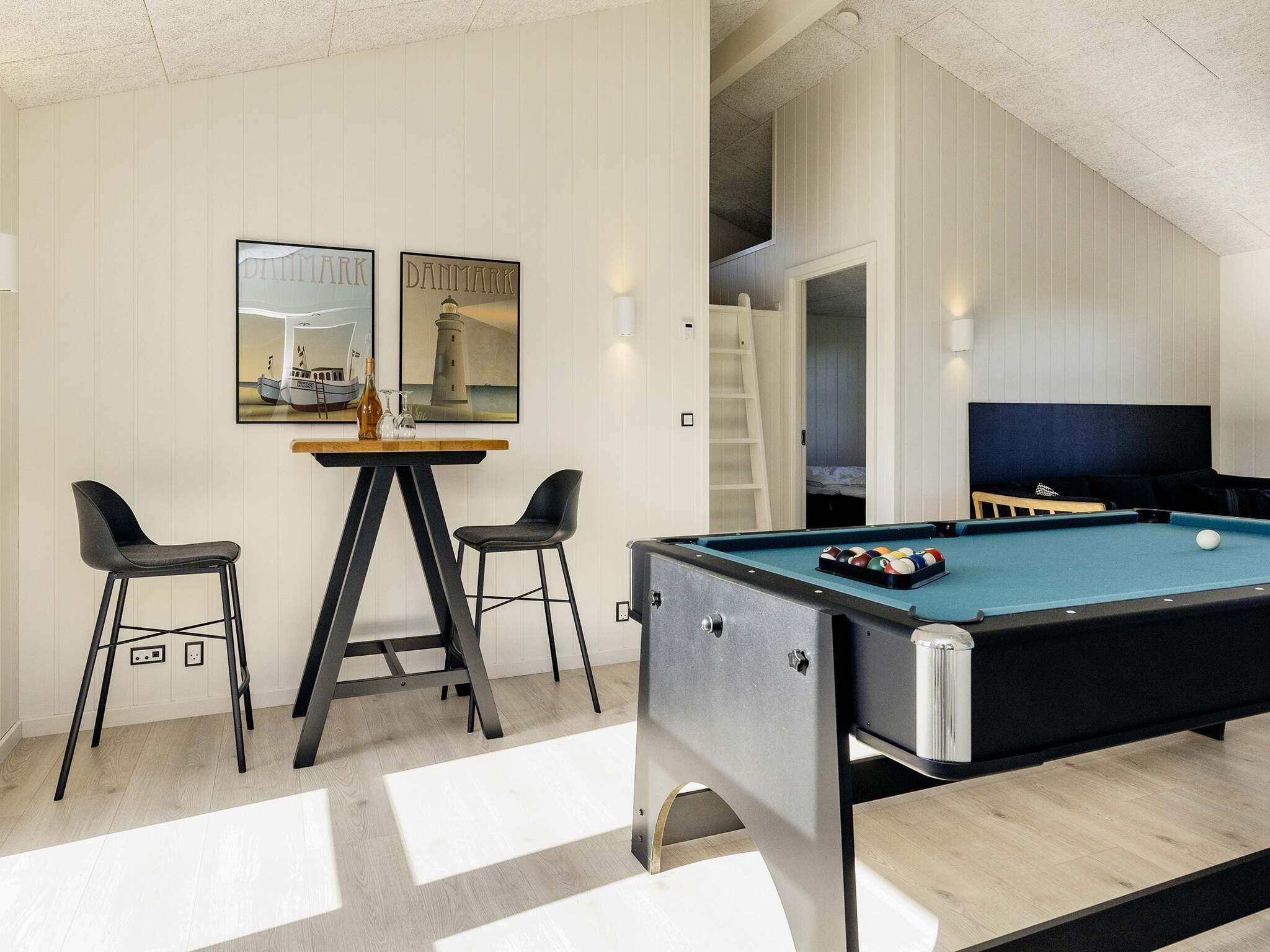 Im Ferienhaus außerdem zwei attraktive Bäder mit Dusche/WC, eines zudem mit Whirlpool für zwei Personen und Zugang zur Sauna. Die insgesamt 10 Schlafplätze verteilen sich auf vier Schlafzimmer für jeweils zwei Personen sowie einem offenen Hems oben unter der Dachschräge mit zwei weiteren Schlafplätzen. Der Hems ist zweigeteilt, mit einem kleinen Aufenthaltsbereich in der Mitte. Außerdem Aktivitätsraum für den Freizeitspaß im Haus.