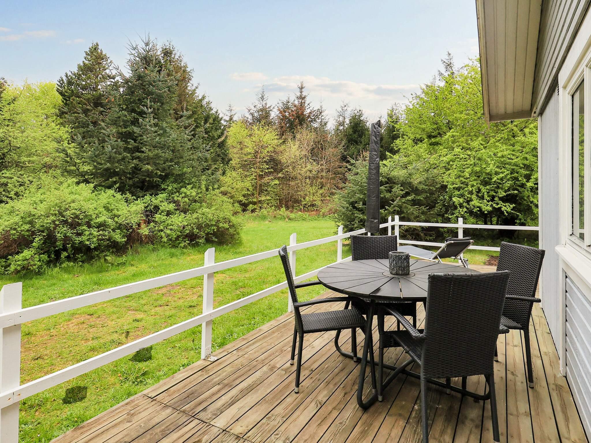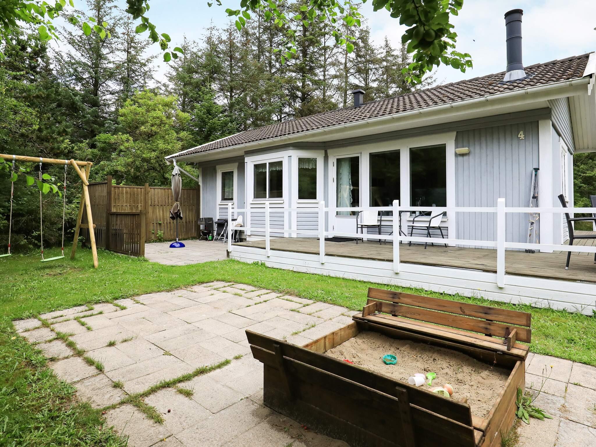 Das Ferienhaus steht auf einem ruhigen Naturgrundstück mit abwechslungsreichen Baumpflanzungen. Außerdem bietet die Rasenfläche ringsum das Haus viel Platz für Spiel, Sport und Spaß an der frischen Luft. Der Rasen wird gemäht. Die Terrasse ist mit Gartenmöbeln, Sonnenliegen, Grill und Sonnenschirm ausgestattet.