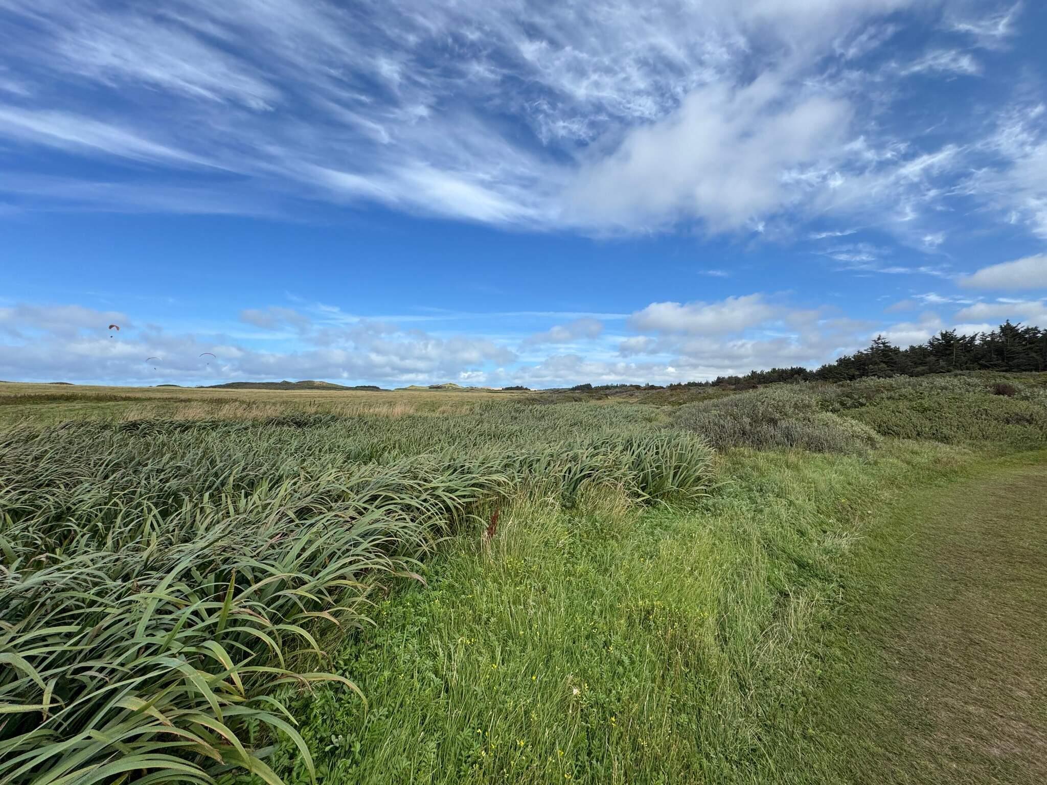 Das Haus bietet unten Zugang zu einer sonnigen, nach Südwesten ausgerichteten Terrassenfläche für Sommer- und Grillabende. Auf dem 1.200 m2 großen Naturgrundstück ist Platz für Spiel, Sport und Spaß mit der Familie. Mit nur ca. 300 m Entfernung zum Meer sind Badeausflüge und Strandspaziergänge in Reichweite.