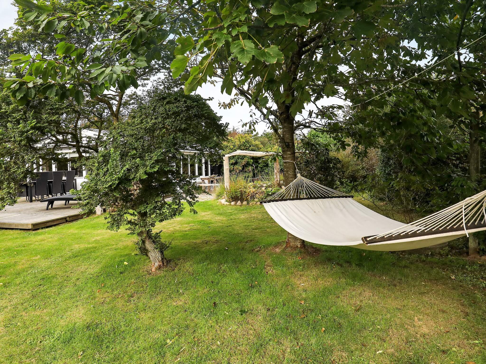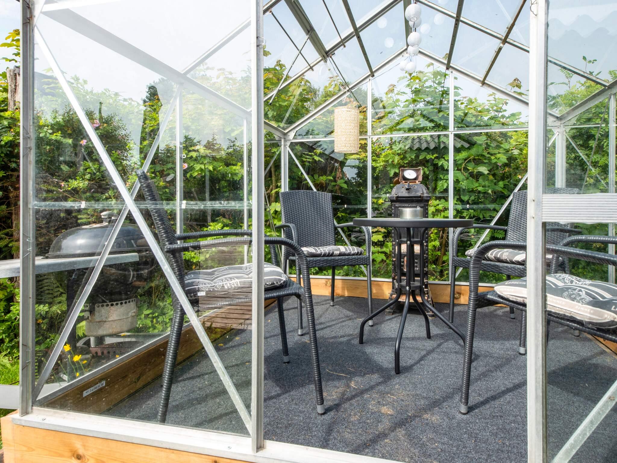 In Verlängerung der Südwestterrasse befindet sich eine Außenküche mit Grill. Der vordere Teil des Grundstückes ist mit Rasen angelegt, wo Sie auch eine Feuerstelle und eine Schaukel sowie eine kleine Orangerie vorfinden, der hintere Teil ist ein Naturgrund, den größere Kinder sicher gerne erforschen wollen.