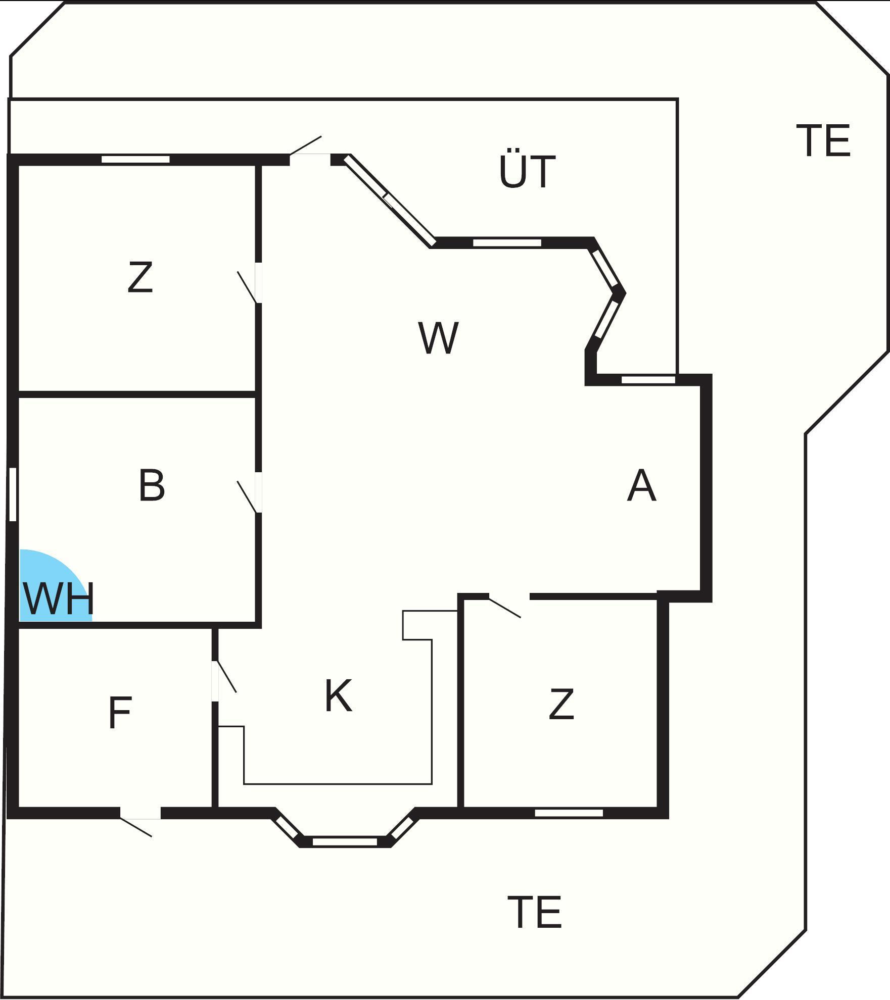 Bad: WC, Waschb., Dusche, Fußbodenheiz.