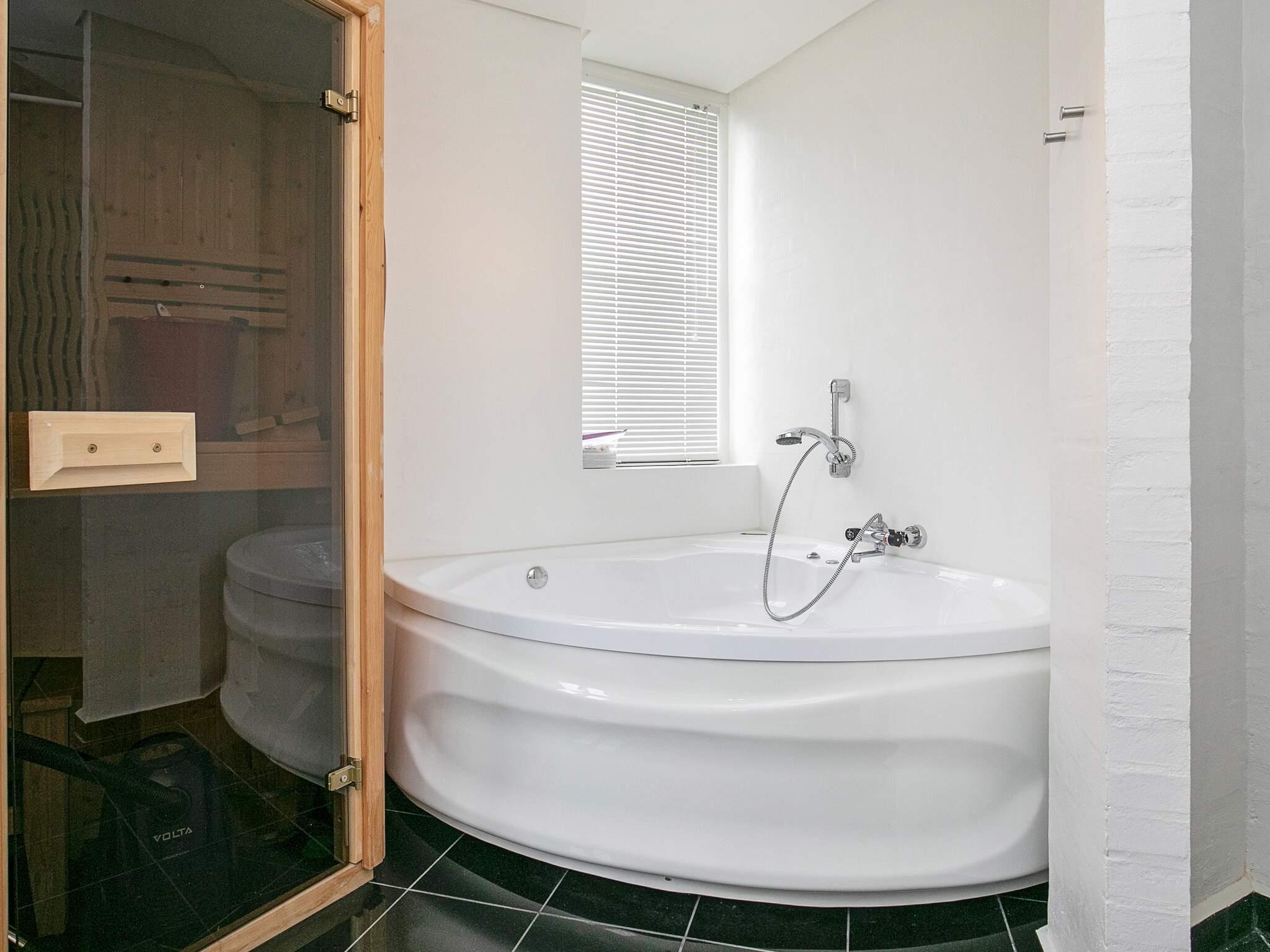Dieses zweigeschossige Ferienhaus liegt unweit des Meeres, auf einem gr. Gemeinschaftsgrundstück in landschaftlich reizvoller Umgebung, im kleinen Fischerort Nr. Lyngby. Die Küche ist offen mit dem Wohnzimmer verbunden, von dem es hinaus auf die Terrasse geht. Im Badezimmer finden Sie Whirlpool und Sauna für entspannende Stunden vor. Im 1. Stock gibt es einen Aufenthaltsraum mit fantastischem Meerblick und Ausgang zum Balkon. Eine energiebesparende Wärmepumpe sorgt für ein angenehmes Innenklima. Im Annex gibt es kein Fenster, nur ein kleines in der Tür. Im Sommer nur ca. 300 m zu Einkaufsmöglichkeiten und zum Restaurant.