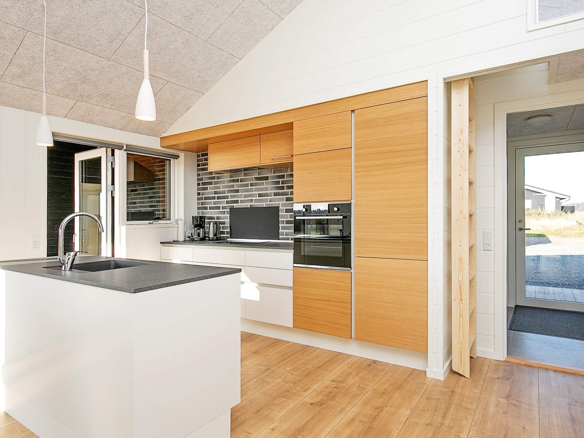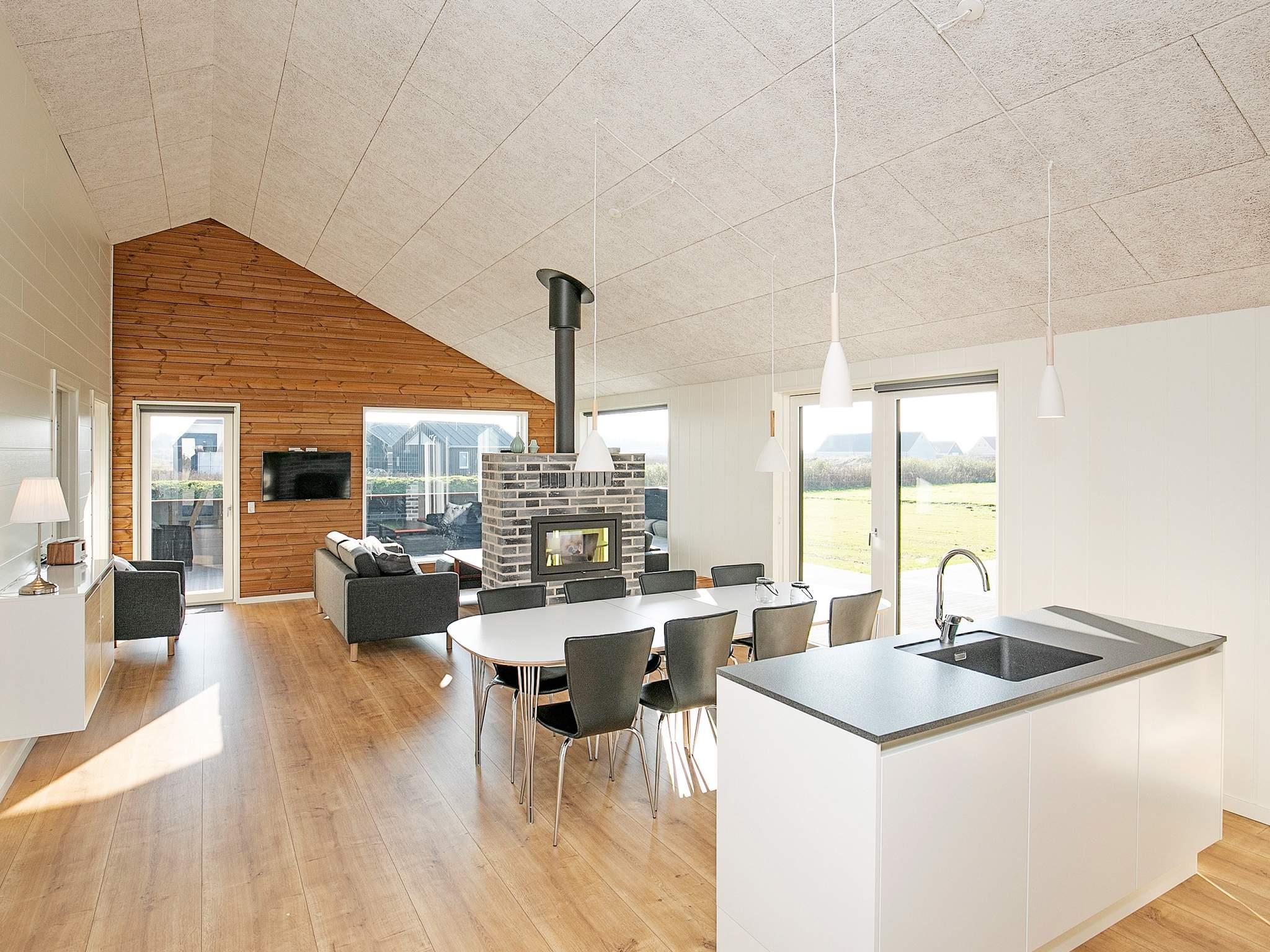 Sie wohnen hier nur etwa 600 m von Meer und Nordseestrand, nahe des kleinen Fischerdörfchens Nr. Lyngby nördlich von Løkken. Das Ferienhaus hat einen offenen Küchen-/Wohnbereich für das Familienleben, inklusive Ess- und Sitzecke sowie schönem Kaminofen für die kühlere Jahreszeit, der hier zugleich als Raumtrenner dient. Zudem stehen vier Schlafzimmer, ein Hems, zwei Badezimmer und eine Gästetoilette zur Verfügung. Das Mobiliar ist geschmackvoll und typisch skandinavisch.