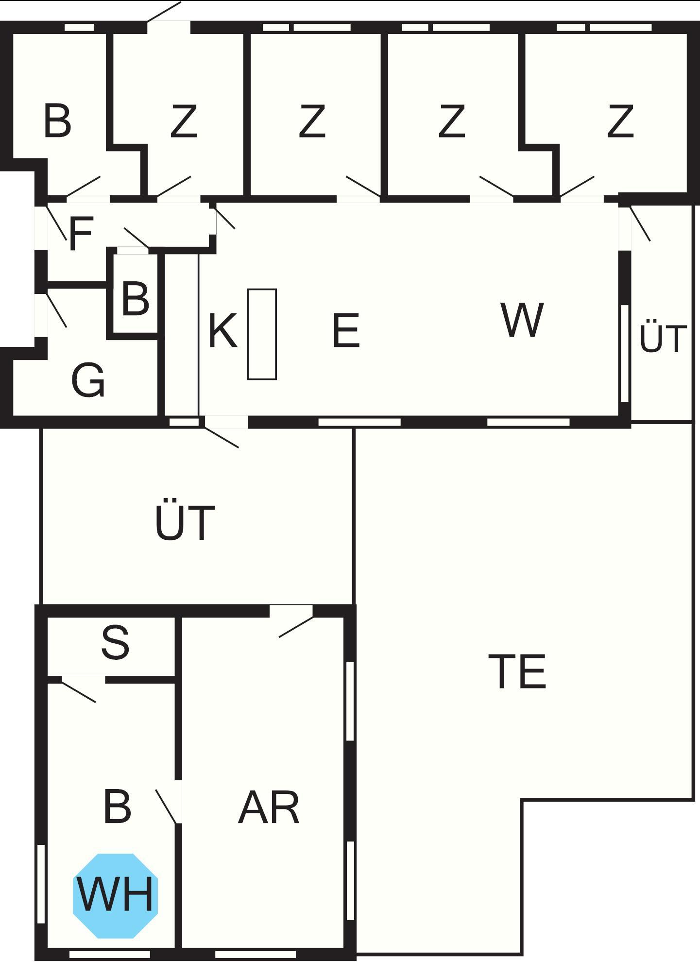 Vom Architektenhand individuell und geschmackvoll gestaltetes Ferienhaus, mit Whirlpool, großer Sauna und einem Aktivitätsraum für den Freizeitspaß in einem separaten Annex gleich nebenan. Steht in einem ruhigen Ferienhausgebiet, auf einem leicht erhöht gelegenen Grundstück mit weitem Ausblick.