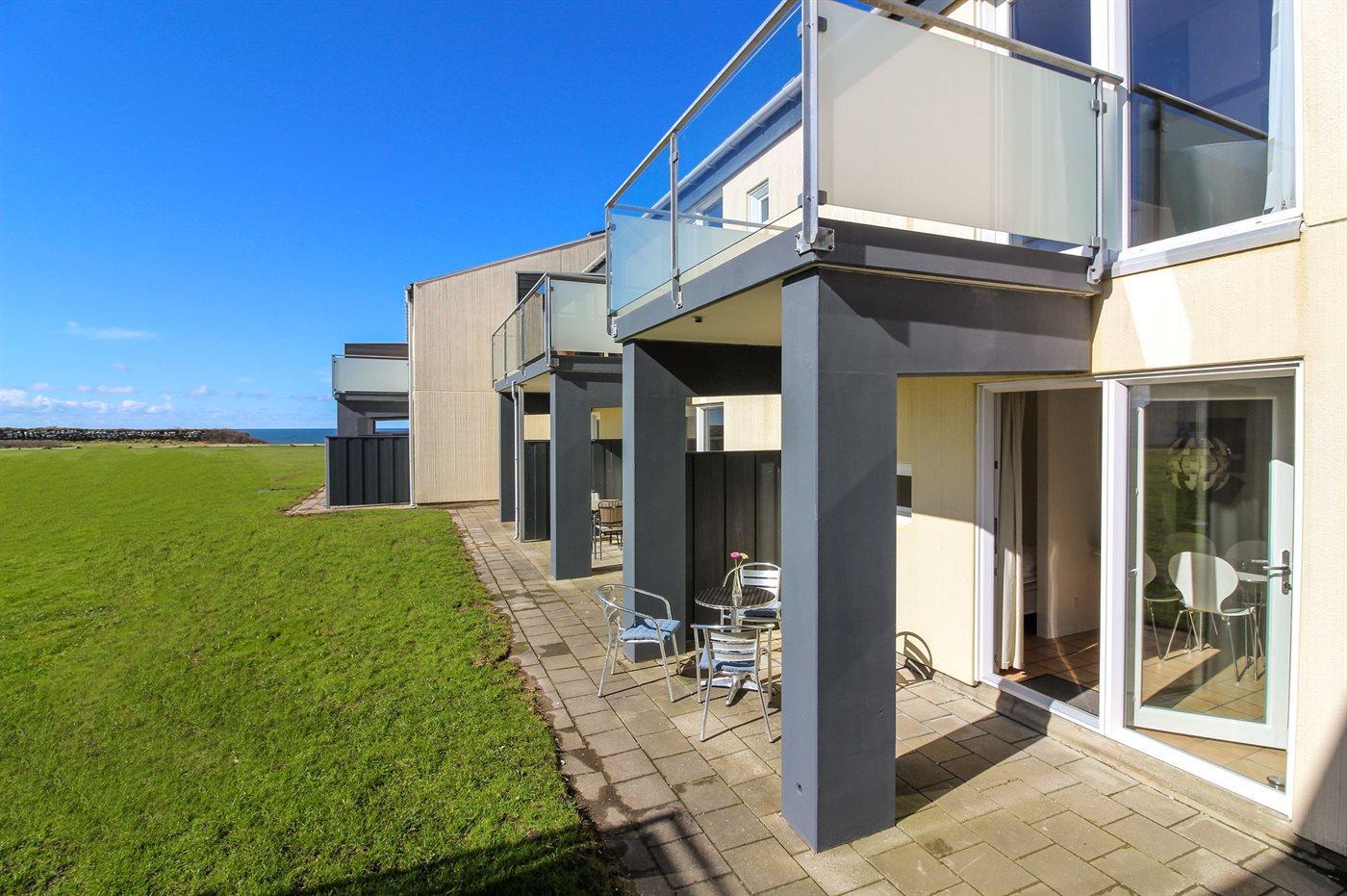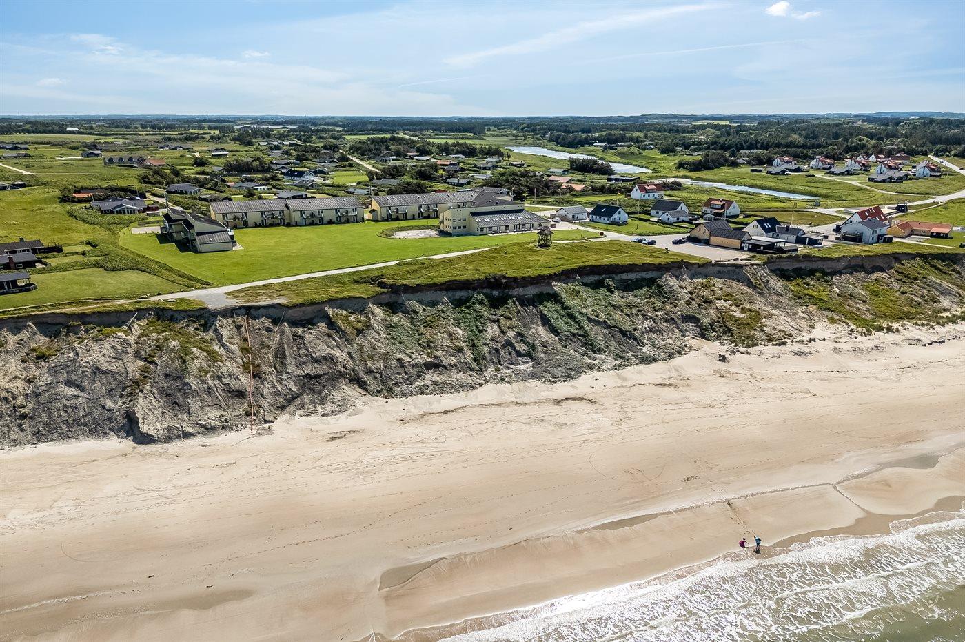 Ferienwohnung in Nr. Lyngby, ein schönes Ferienhausgebiet an der Westküste zwischen Løkken und Lønstrup. Nr. Lyngby ist für ihr Steilufer und den schönen Sandstrand bekannt. Zur Ferienanlage gehört ein gemeinsamer Swimmingpool sowie ein Kinderpool. Der Swimmingpool liegt auf dem großen, gemeinsamen Rasen und kann "von Woche 26-34" benutzt werden. Guter Spielplatz für die Kinder auf dem Gemeinschaftsareal. Im Gemeinschaftsgebäude stehen Waschmaschinen und Wäschetrockner kostenlos zur Verfügung. An den schönen Sommerabenden können Sie den Sonnenuntergang genießen. Vom Grundstück gibt es eine prachtvolle Aussicht über das Wasser und die Küste.