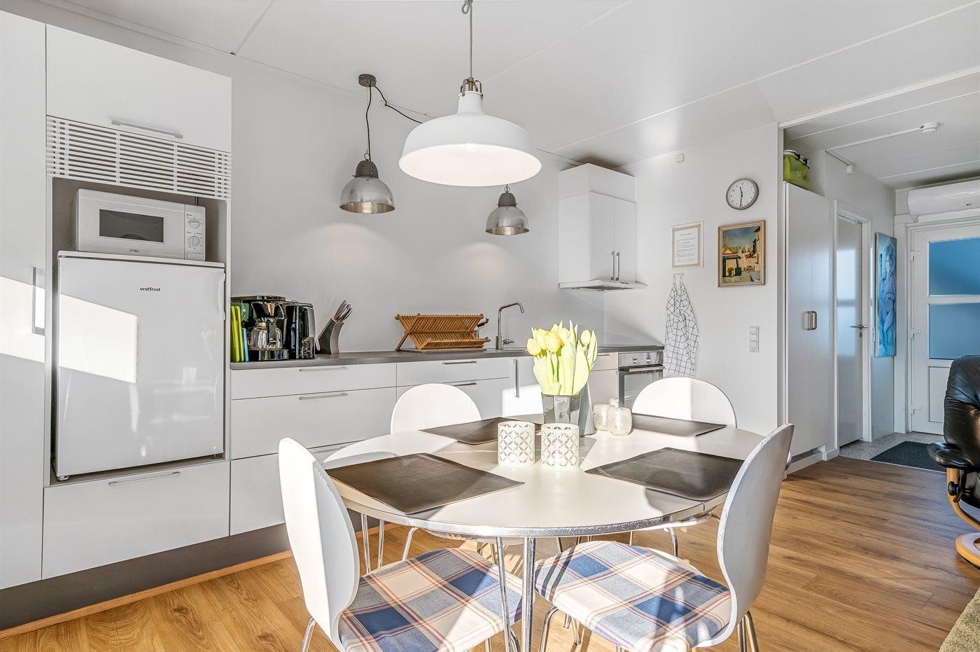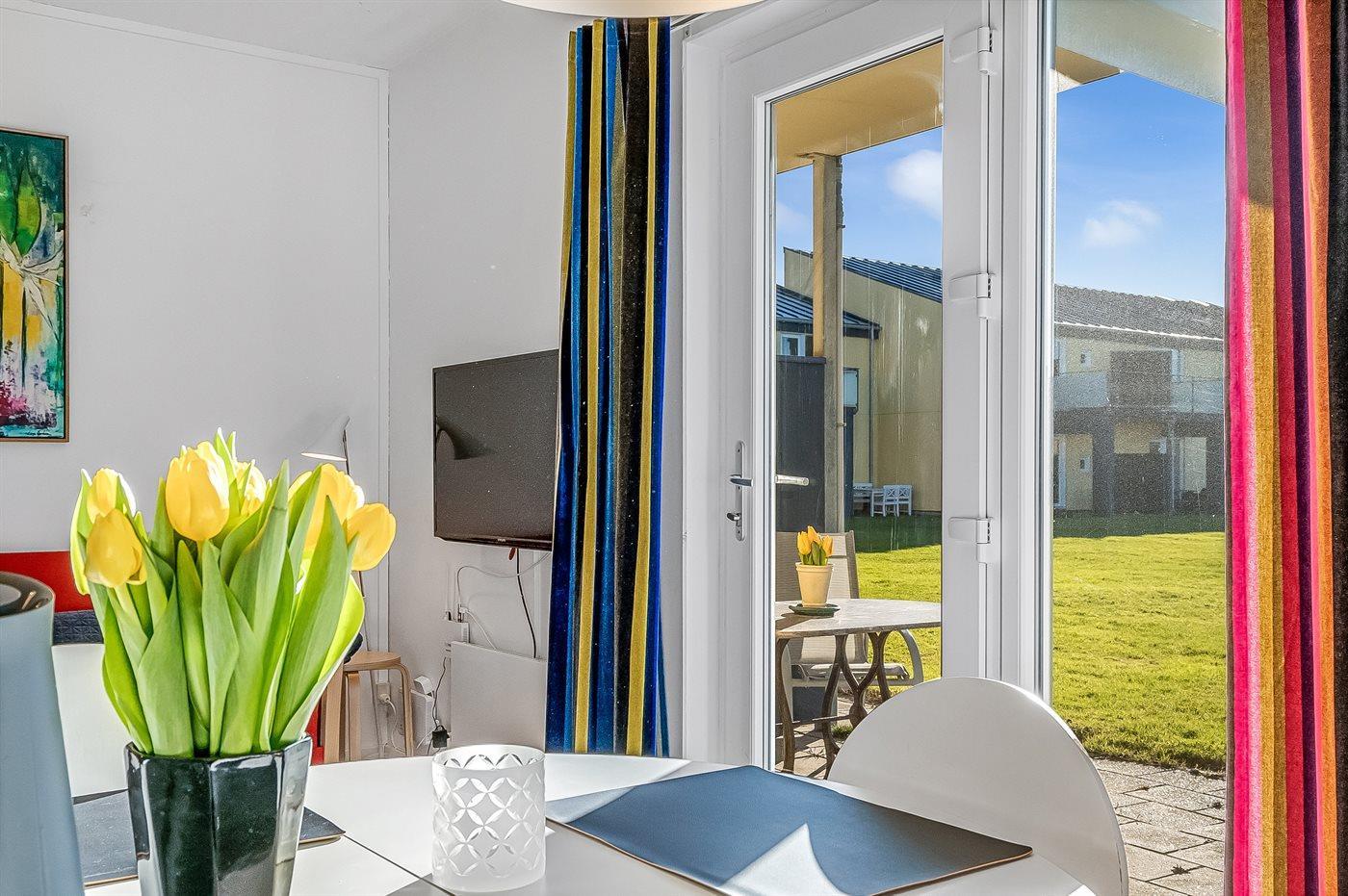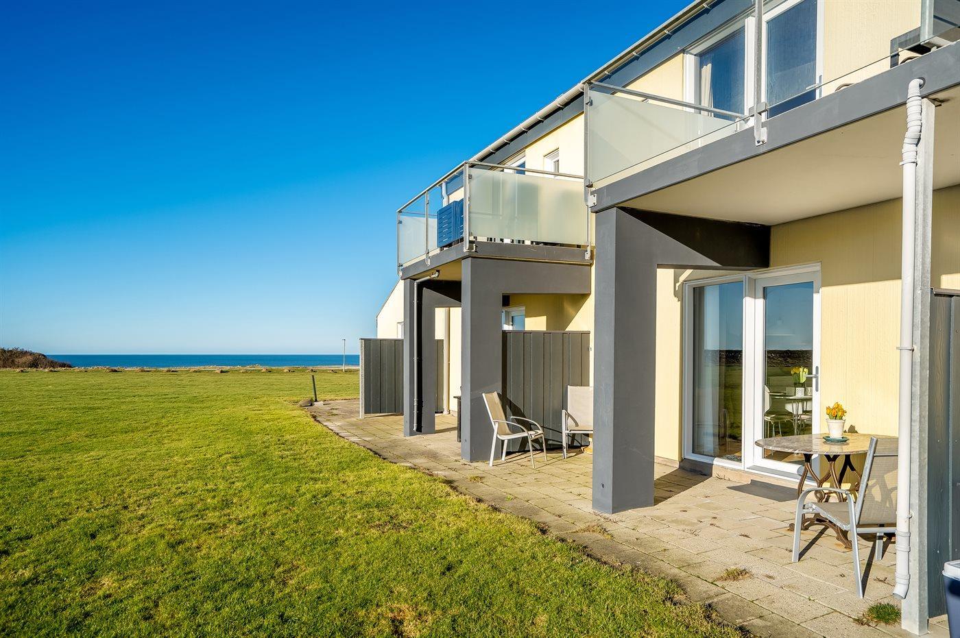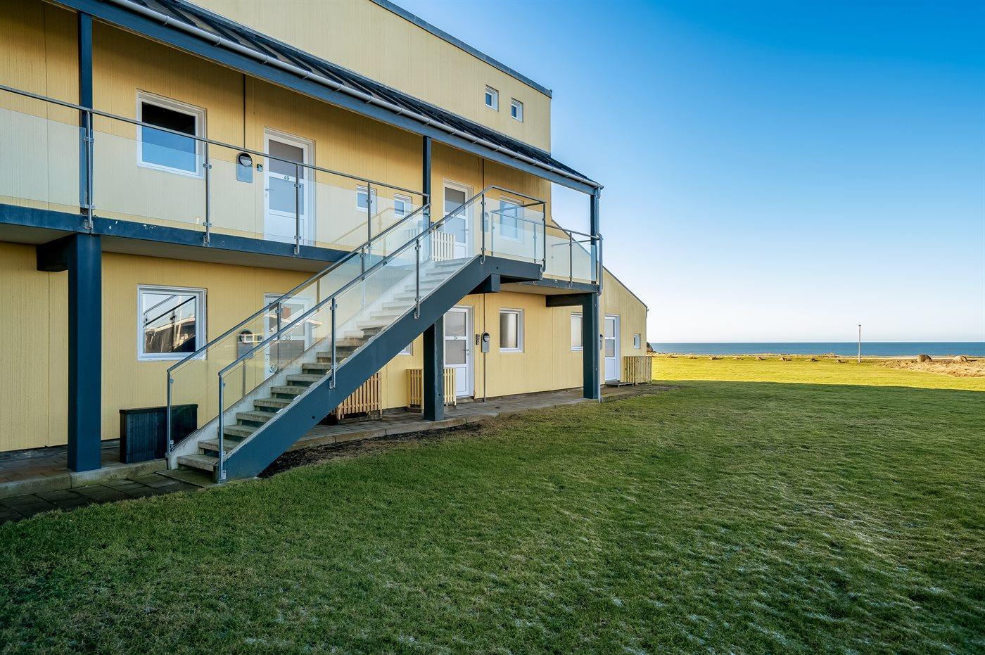 Ferienwohnung in Nr. Lyngby, ein schönes Ferienhausgebiet an der Westküste zwischen Løkken und Lønstrup. Nr. Lyngby ist für ihr Steilufer und den schönen Sandstrand bekannt. Zur Ferienanlage gehört ein gemeinsamer Swimmingpool sowie ein Kinderpool, die im Zeitraum ultimo Juni bis ultimo August zur Verfügung stehen. Guter Spielplatz für die Kinder auf dem Gemeinschaftsareal. Im Gemeinschaftsgebäude stehen Waschmaschinen und Wäschetrockner kostenlos zur Verfügung. An den schönen Sommerabenden können Sie den Sonnenuntergang genießen. Vom Grundstück gibt es eine prachtvolle Aussicht über das Wasser und die Küste.