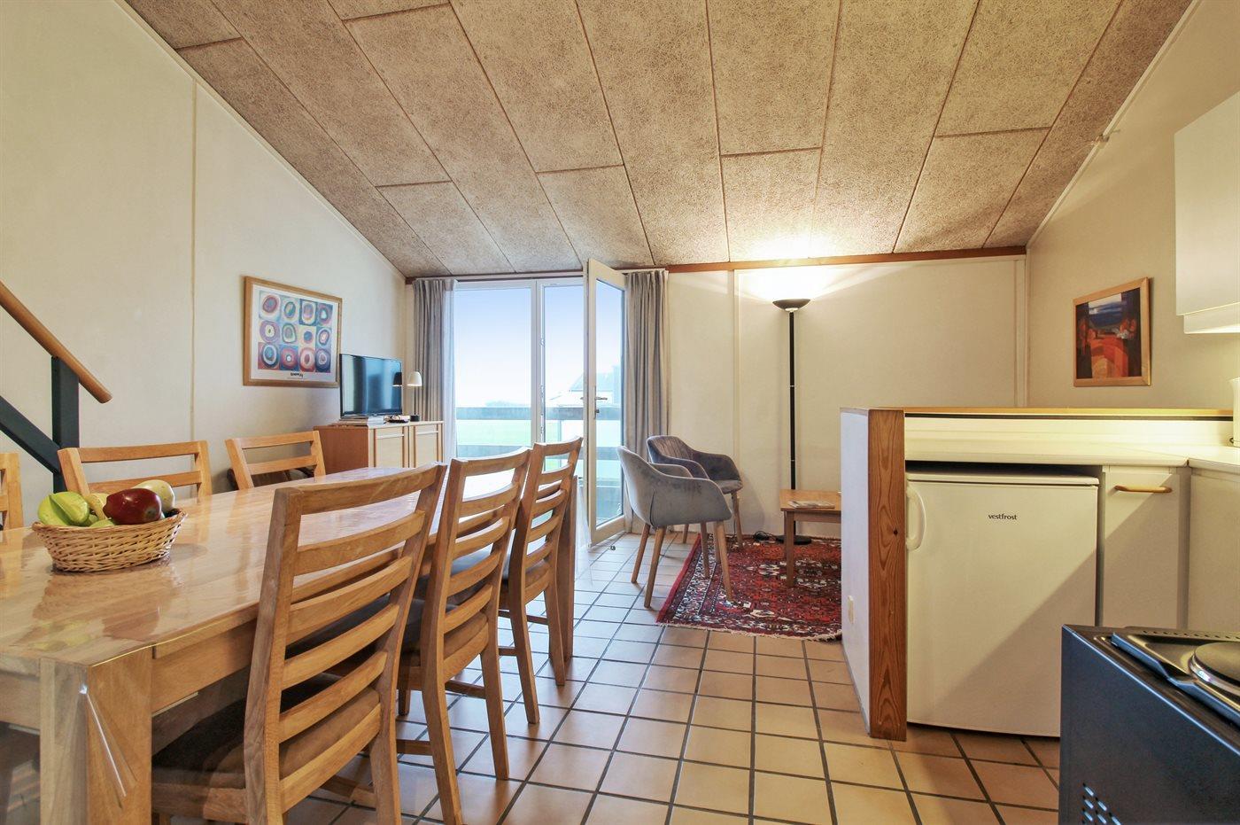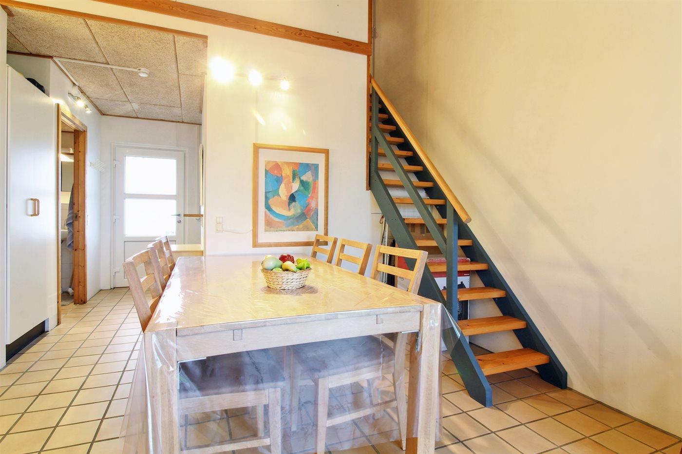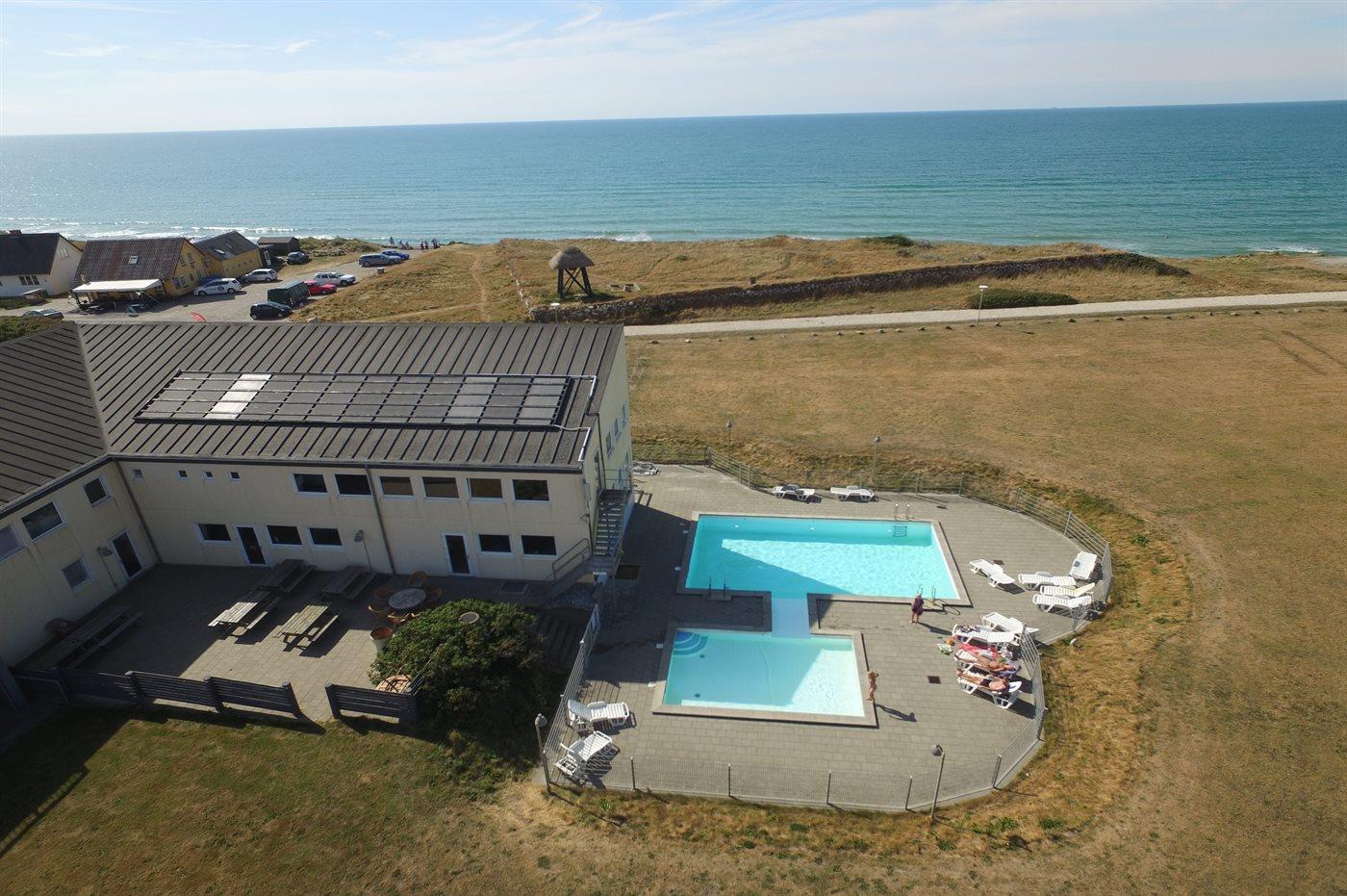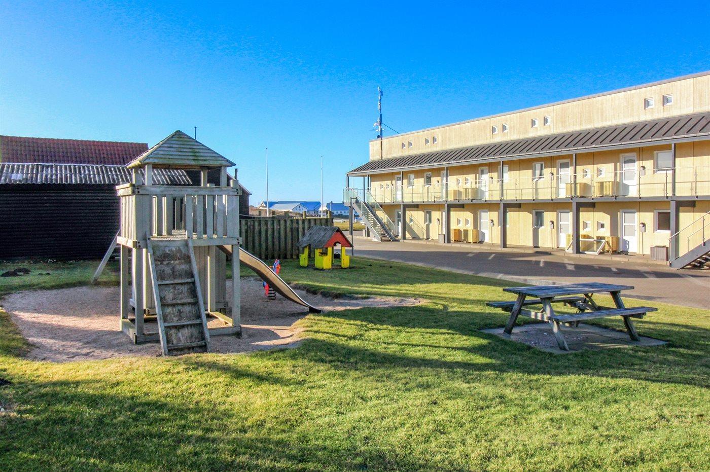 Ferienwohnung in Nr. Lyngby, ein schönes Ferienhausgebiet an der Westküste zwischen Løkken und Lønstrup. Nr. Lyngby ist für ihr Steilufer und den schönen Sandstrand bekannt. Zur Ferienanlage gehört ein gemeinsamer Swimmingpool sowie ein Kinderpool. Der Swimmingpool liegt auf dem großen, gemeinsamen Rasen und kann von Woche 26-34 benutzt werden. Guter Spielplatz für die Kinder auf dem Gemeinschaftsareal. Im Gemeinschaftsgebäude stehen Waschmaschinen und Wäschetrockner kostenlos zur Verfügung. Die Wohnung befindet sich im 1. Stock, und an den schönen Sommerabenden können Sie den Sonnenuntergang genießen. Sowohl von der Wohnung als auch vom Grundstück gibt es eine prachtvolle Aussicht über das Wasser und die Küste. Offenes Obergeschoss mit 4 Schlafplätzen. Zur Wohnung gehört kein Balkon.