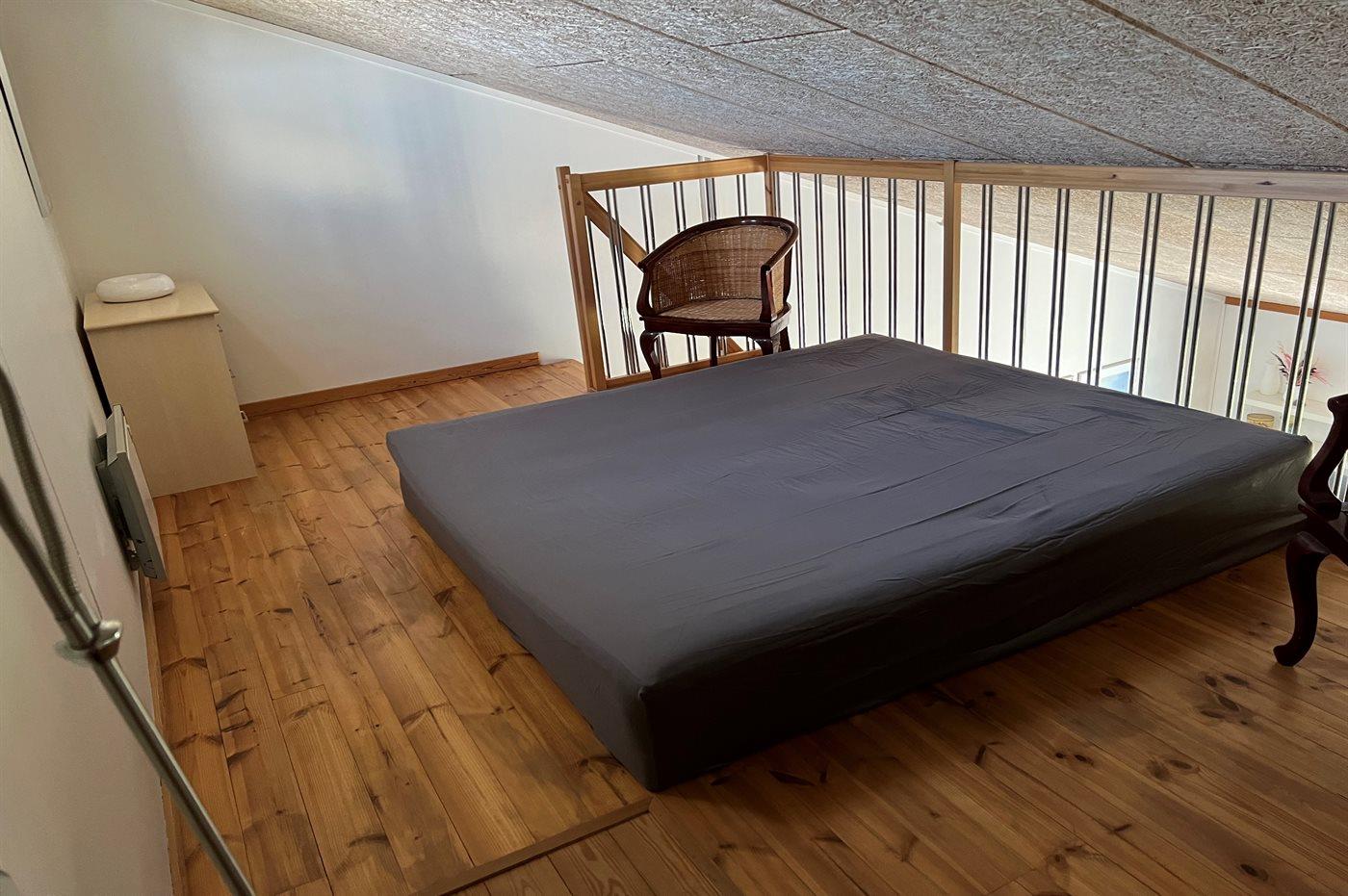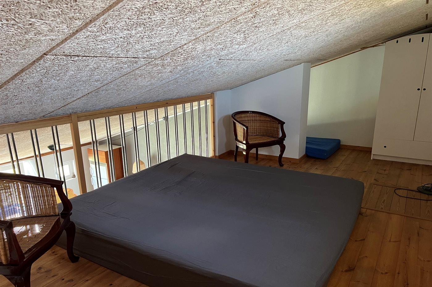 Es gibt einen Schlafraum. 2 Schlafplätze in einem Doppelbett. 2 Schlafplätze auf einer Doppelschlafcouch. 2 Schlafplätze auf Matratzen. 2 von diesen Schlafplätzen befinden sich im offenen Obergeschoss und 2 im Wohnzimmer.
