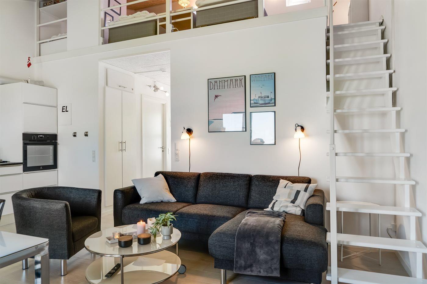Gemütliche Wohnung mit Panorama Meeresblick. Im Zeitraum ultimo Juni bis ultimo August gibt es Zutritt zu einem gemeinsamen Außenpool samt Kinderpool. Die Wohnung liegt im Feriencenter Lyngby Mølle in Nr. Lyngby, das mit der einmaligen Küste mit breitem Sandstrand und steiler Küstenlinie gekennzeichnet ist. Guter Spielplatz für die Kinder auf dem Gemeinschaftsareal, und im Gemeinschaftsgebäude gibt es eine Münzwäscherei mit Waschmaschinen und Wäschetrockner. Übrigens: 3 der insgesamt 5 Schlafplätze befinden sich im offenen Obergeschoss der Wohnung (siehe Grundriss).