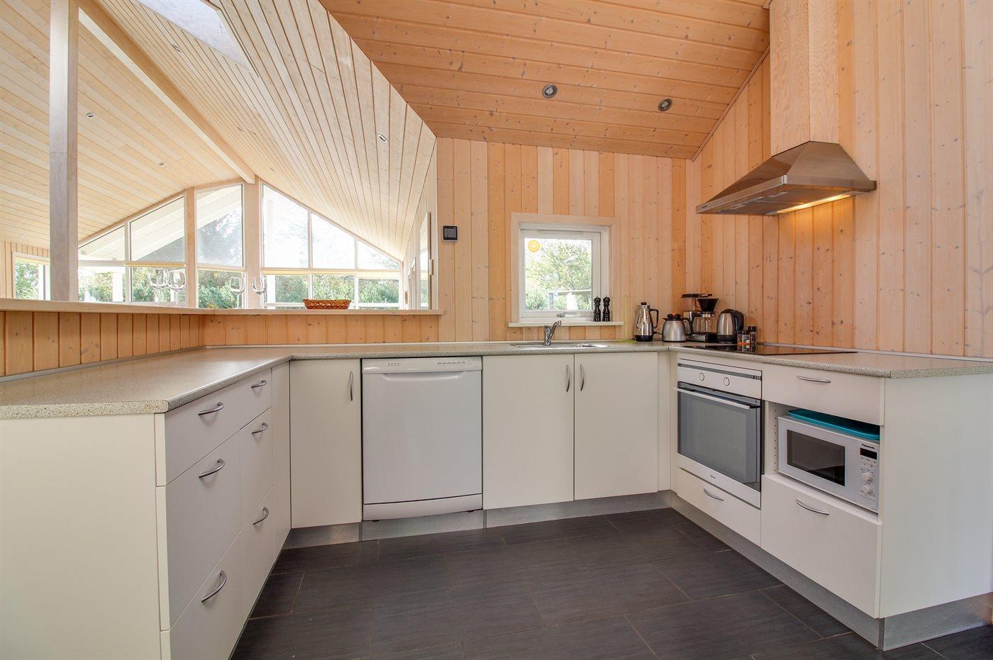 Die Küche ist mit Kühlschrank ausgestattet. Außerdem gibt es 4 Keramik-Kochfelder, Umluftofen, Mikrowelle sowie Geschirrspüler.