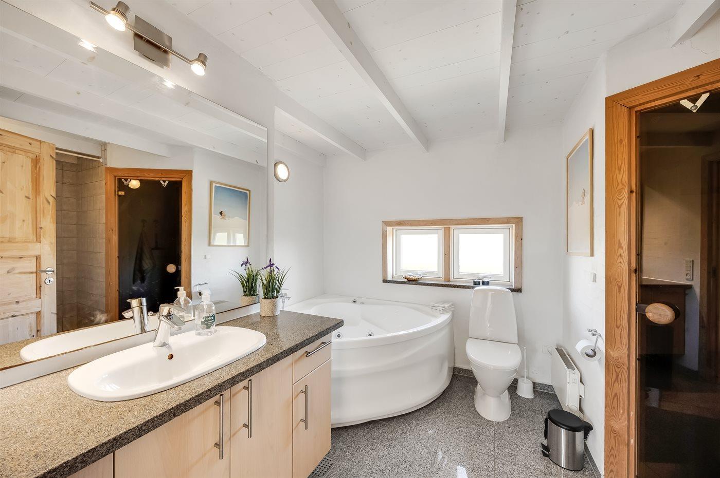 Es gibt 2 Badezimmer mit Duschnische und 2 Toiletten. Fußbodenheizung in 2 Badezimmern. Es steht eine Sauna zur Verfügung in der Sie sich so richtig entspannen können.