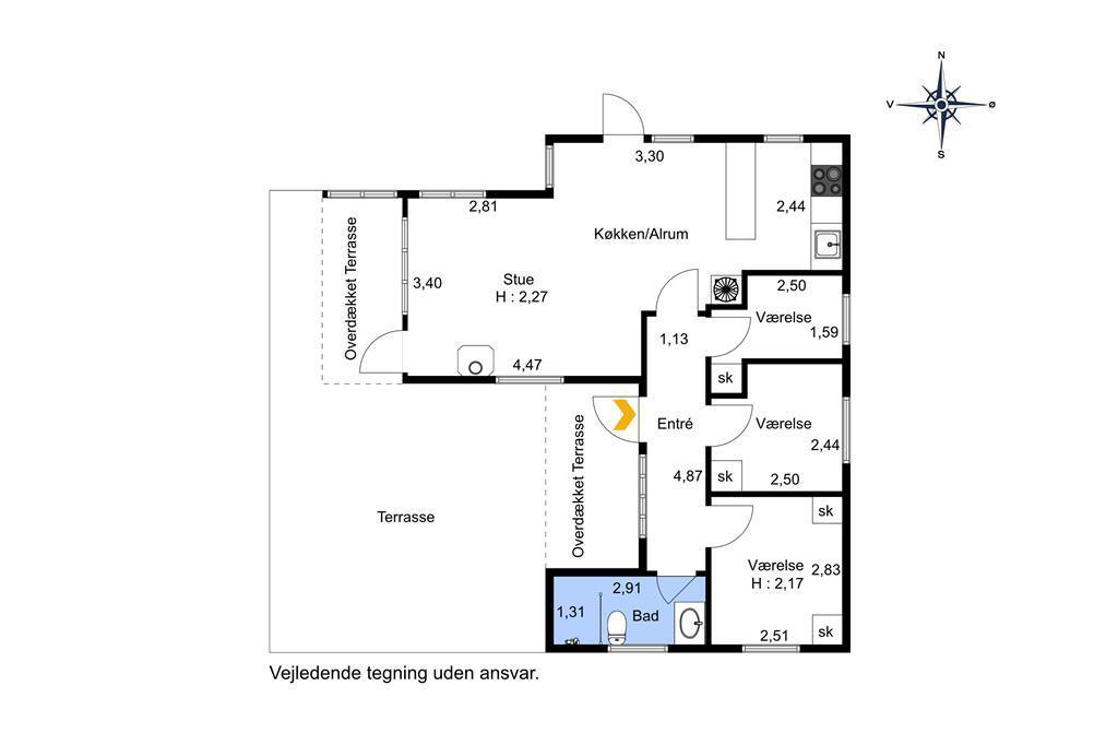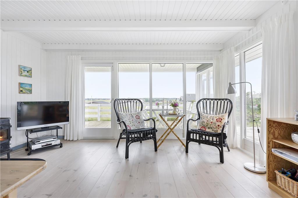 Das Haus liegt auf einem herrlichen Dünengrund, nur etwa 100 Meter entfernt vom Strand und mit fantastischer Aussicht über das Meer und die Küstenlandschaft. Die Terrasse schlingt sich um die ganze Westseite des Hauses und bietet die perfekte Gelegenheit, die warme Sommersonne und die schöne Natur zu genießen. Der überdachte Teil der Terrasse schützt vor Westwind und ist somit ideal geeignet für lange Grillabende mit der Familie an einem schönen Sommerabend, mit dem Rauschen des Meeres immer im Hintergrund. Selbstverständlich stehen Ihnen auch Gartenmöbel, Liegestühle und ein Grill zur Verfügung.