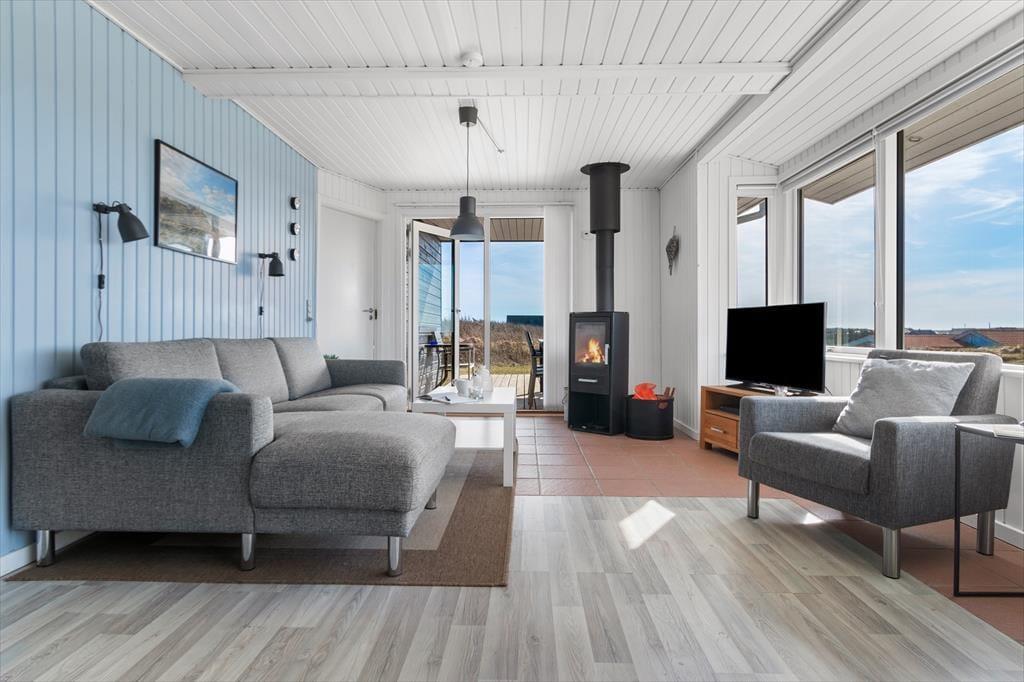 Das Haus liegt in einem ruhigen Ferienhausgebiet Nr. Lyngbys. Der Strand und die hohe Abbruchkante, die sich besonders bei Paraglidern größter Beliebtheit erfreut, liegen nur 175 Meter vom Grundstück entfernt. In nördlicher Richtung erwartet die beeindruckende Wanderdüne Rudbjerg Knude mitsamt dem traumhaft schönen, versandeten Leuchtturm Ihren Besuch. Während der Sommermonate öffnet ein kleiner Laden direkt in Nr. Lyngby. Wirklich gute Einkaufsmöglichkeiten, kleine Boutiquen, gute Restaurants und Cafés locken hingegen in den großen Badeorten Løkken und Lønstrup.