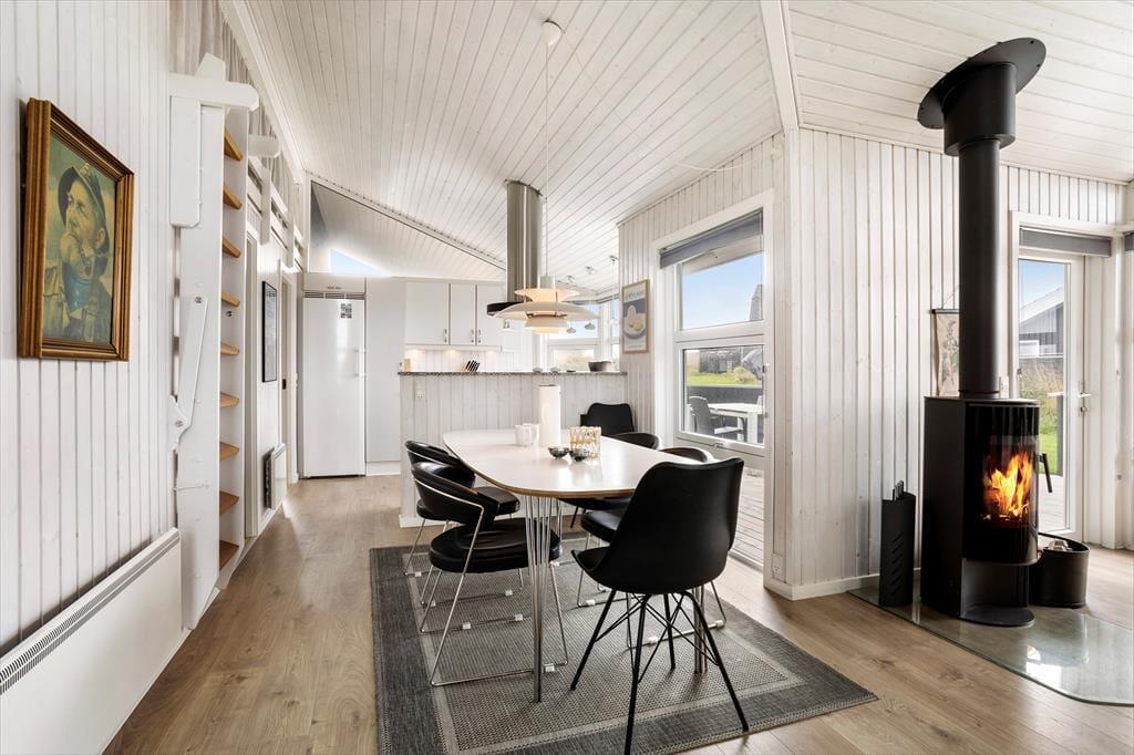 Seit der Erbauung im Jahr 2003 wurde das Haus außergewöhnlich gut gepflegt, sodass es wie neu erscheint. Dies gilt auch für das Mobiliar, das sorgfältig auf die einladenden Räume abgestimmt wurde. Im Inneren stehen Ihnen 113 m² zur Verfügung, die sinnvoll auf 4 Schlafzimmer, zwei Badezimmer, einen Hauswirtschaftsraum und ein großes Wohnzimmer mit integrierter Küche verteilt sind. Es gibt auch einen Hängeboden, der vom Wohnzimmer aus zugänglich ist – falls Kinder mit im Urlaub sind, werden sie diesen Bereich wahrscheinlich schnell zu ihrem privaten Rückzugsort erklären. Eines der Schlafzimmer befindet sich im Anbau des Hauses mit separatem Eingang. Sowohl Kinder als auch Erwachsene haben viel Platz, um sich im Wohnzimmer zu versammeln, das ein helles und luftiges Zimmer mit großen Fenstern und einer hohen Decke ist. Wenn es draußen kühl ist, können Sie den Kamin anzünden, und an warmen Sommertagen können die Terrassentüren weit geöffnet werden. Das Haus verfügt außerdem über einen separaten Aktivitätsraum von 30 m².