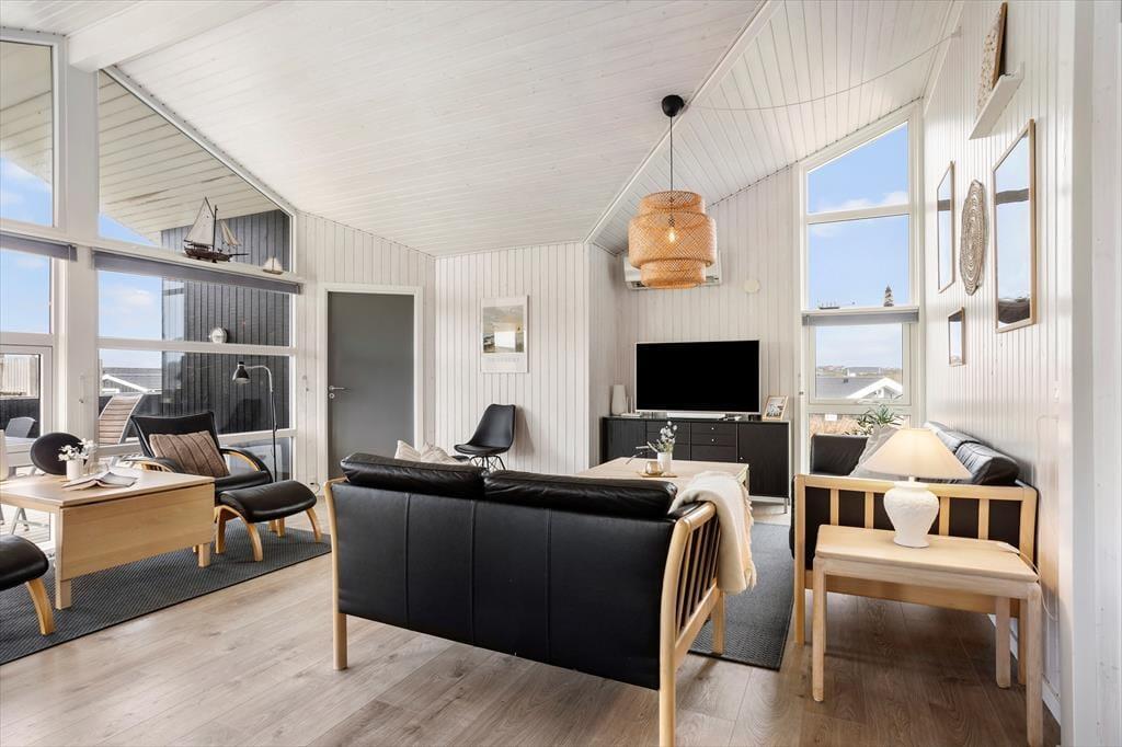 Das Haus liegt ruhig am Ende einer kleinen, abgeschlossenen Sackgasse. Wenn Sie die wenigen hundert Meter bis zum anderen Ende von Tjørnevej spazieren, stehen Sie an der steilen Klippe, die zum Strand von Nr. Lyngby führt, und von hier oben haben Sie einen fantastischen Blick auf die Nordsee und die dramatische Küstenlandschaft. Wenn Sie nicht alle Urlaubstage mit Strandspaziergängen, Badetagen in der Nordsee und Entspannung auf der Terrasse verbringen möchten, gibt es in der Umgebung viele Ausflugsmöglichkeiten. Einige Kilometer südlich liegt der Badeort Løkken, und im Norden finden Sie die Wanderdüne Rubjerg Knude und den berühmten Leuchtturm Rubjerg Knude Fyr, der nur wenige Meter von der Klippe entfernt steht. Auch das alte Fischerdorf Lønstrup ist einen Besuch wert, unter anderem wegen der vielen Galerien und Kunsthandwerksbetriebe.