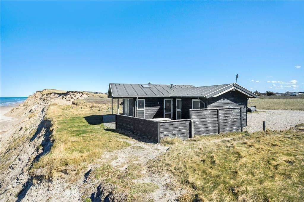 Auch von der Terrasse aus habt ihr einen großartigen Blick auf die Nordsee; jeden Abend könnt ihr hier bei einer Tasse Kaffee oder einem Glas Wein den wunderschönen Sonnenuntergang genießen und dem Rauschen des Meeres lauschen. Grill, Gartenmöbel und Liegestühle stehen den Gästen des Ferienhauses zur Verfügung, sodass alle Möglichkeiten, den dänischen Sommer zu genießen, voll ausgeschöpft werden können.