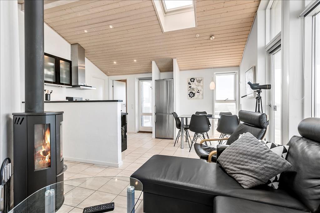 Das Ferienhaus ist ideal für diejenigen, die nicht viel Platz brauchen, aber gerne nah am Wasser sind und einen Urlaub zu zweit mit Ruhe und Erholung genießen möchten. Das Haus ist einfach eingerichtet mit einer kombinierten Küche und einem Wohnzimmer, Schlafzimmern und einem Badezimmer mit Dusche und Whirlpool. Es ist überall hell und gemütlich, und vom Wohnzimmer aus habt ihr einen fantastischen Blick auf die Nordsee, die nur wenige Meter entfernt liegt; genießt den Anblick bei einem Feuer im Kamin, besser kann es nicht werden. Hier könnt ihr das ganze Jahr über einen wunderbaren und entspannten Urlaub in komfortabler und funktionaler Umgebung verbringen. Das Haus wird mit Fußbodenheizung und Kamin beheizt.