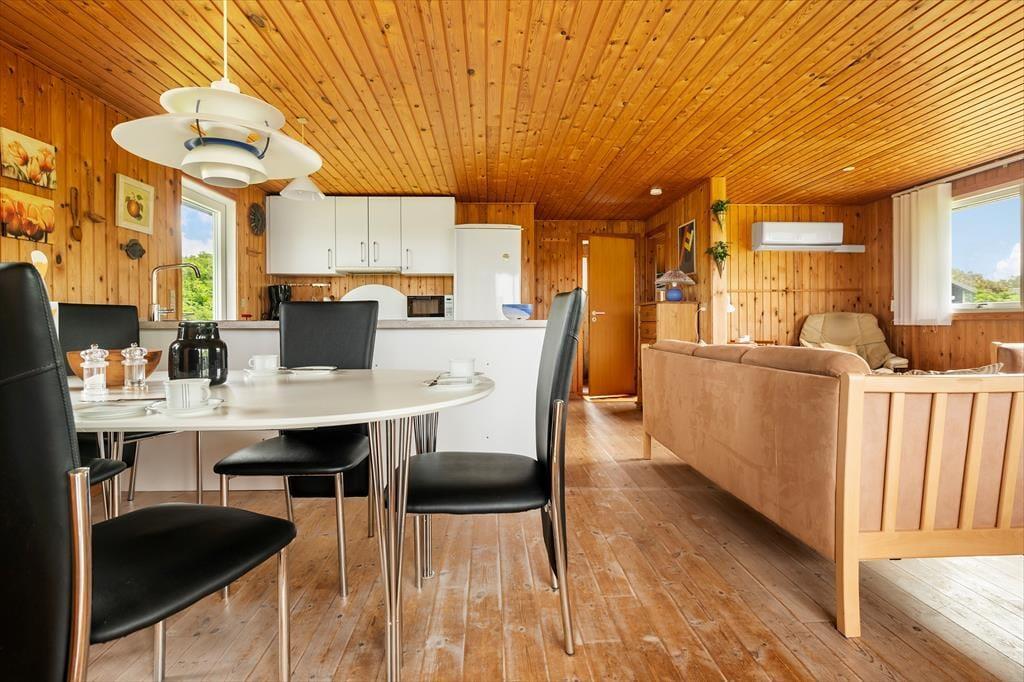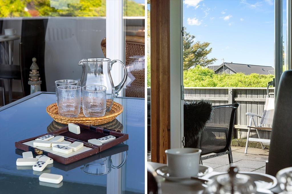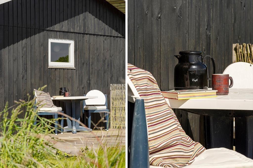 Deine zwei- und vierbeinigen Familienmitglieder dürfen sich auf schöne Tage auf dem grünen, ungestörten Naturgrundstück freuen. Heckenrosen schirmen einen Großteil des Grundstücks gut ab. Rund ums Haus erstreckt sich eine Rasenfläche, die zum Ballspielen und Umhertollen an der frischen Luft einlädt. Falls du dich unter freiem Himmel entspannen möchtest, kannst du es dir auf einem komfortablen Gartenstuhl in der Sonne gemütlich machen. Terrassen schmiegen sich an die Ost- und Westseite des Ferienhauses. Die offene Terrasse gen Osten eignet sich wunderbar für ein gemeinsames Frühstück in der aufgehenden Morgensonne. Falls du den Sonnenuntergang nicht mit deinen Lieben am beliebten "Sonnenuntergangsplatz" Nr. Lyngbys bewundern möchtest, ist es einfach herrlich, die Abendstunden in geselliger Runde auf der teilweise überdachten Westterrasse zu verbringen.