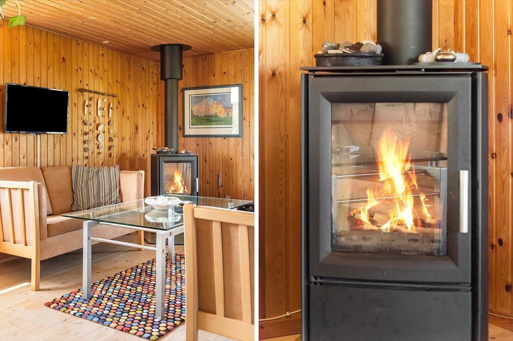 Mit seiner schwarz gestrichenen Holzfassade wirkt das Ferienhaus äußerlich genauso klassisch wie im Innenbereich. An kühlen Tagen sorgt der Kaminofen im Wohnraum für behaglicher Wärme und Gemütlichkeit. Du kannst dich wunderbar in der Polstersitzgruppe entspannen, im Lehnstuhl in aller Ruhe ein gutes Buch lesen oder mit deinen Lieben rund um den Esstisch vergnügt Karten spielen. Falls sich bei dir der Hunger meldet, trennen dich nur wenige Schritte von der Küche, die offen mit dem Wohnraum verbunden ist. Mit zwei Schlafräumen und einem Badezimmer eignet sich das Mietobjekt sehr gut für einen Urlaub zu zweit oder für entspannte Urlaubstage einer kleinen Familie. Zwei Haustiere sind ebenfalls herzlich willkommen.