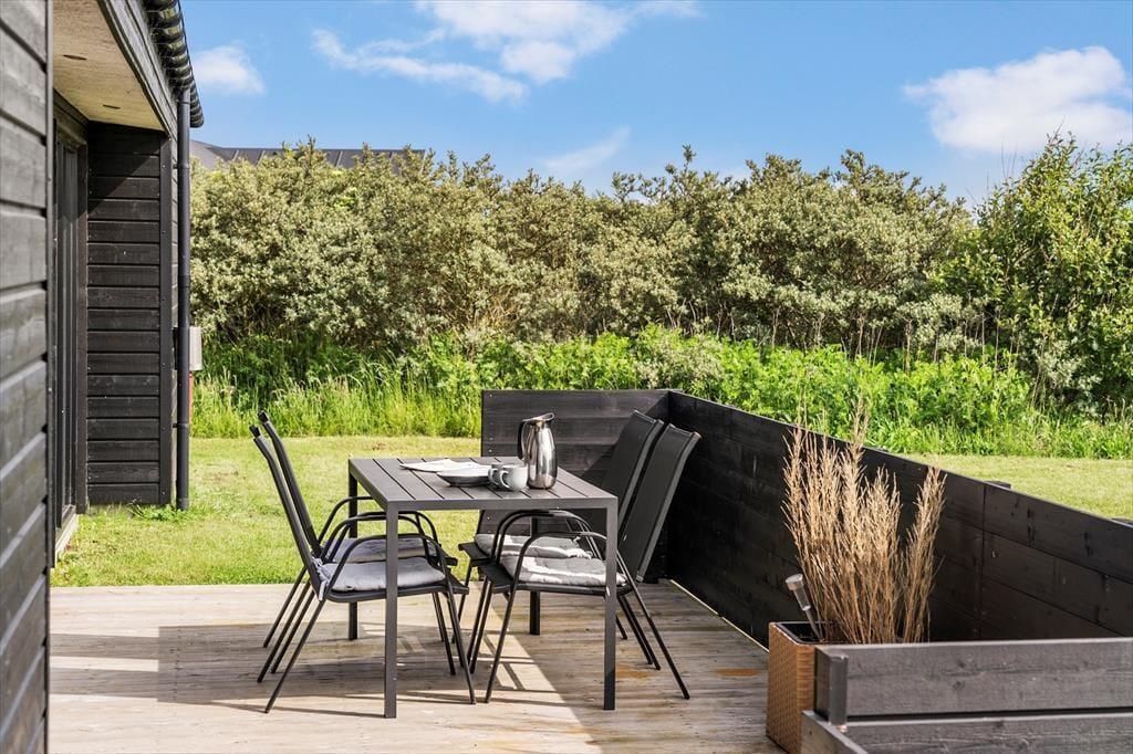 Auch draußen setzt sich das Urlaubserlebnis fort. Das Ferienhaus liegt auf einem ruhigen Grundstück inmitten der Natur. Auf den Terrassen kannst du sowohl die Morgensonne als auch die langen, hellen Sommerabende genießen. Es stehen dir mehrere schöne Terrassenbereiche zur Auswahl – einige davon sind windgeschützter als andere – sodass du immer ein sonniges Plätzchen oder ein geschütztes Eckchen findest, um eine Tasse Kaffee zu trinken, ein gutes Buch zu lesen oder einfach dem Zwitschern der Vögel in den Bäumen zu lauschen. Wenn das Wetter mitspielt, ist es perfekt, um die Familie zu gemeinsamen Mahlzeiten im Freien zu versammeln – und am Abend den Grill anzuzünden, während der Duft des Sommeressens sich mit der salzigen Meeresluft vermischt. Die Kinder haben auf dem Grundstück viel Platz zum Spielen und Toben, während die Erwachsenen Ruhe und Gemeinschaft genießen. Das sind die Tage, an die man sich erinnert – wenn die Zeit stillsteht und der Alltag in weiter Ferne ist.