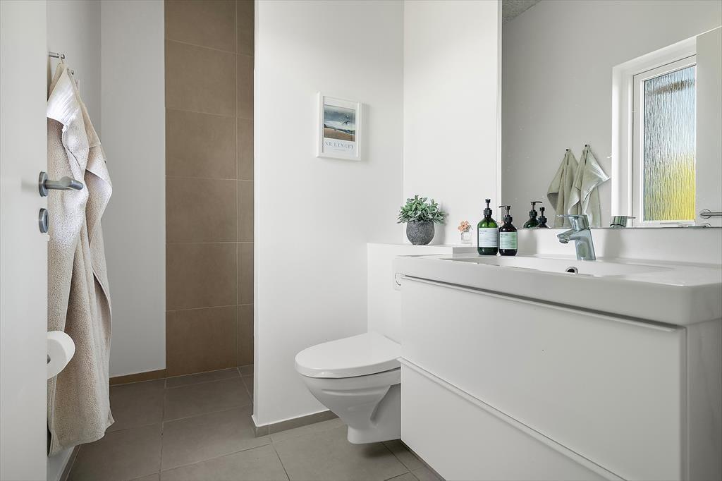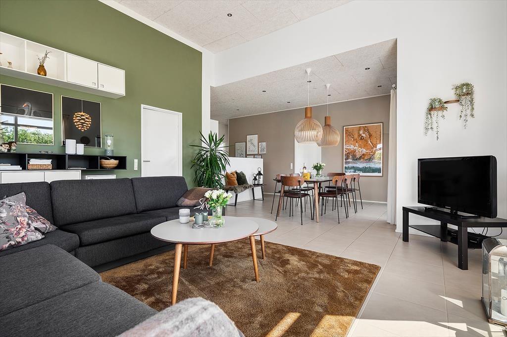 Mach Urlaub inmitten wunderschöner Natur und genieße die Ruhe in diesem herrlichen Ferienhaus in Nr. Lyngby. Das Haus ist hochwertig gebaut und liegt völlig ungestört auf einem schönen Grundstück, auf dem Groß und Klein viel Platz und Privatsphäre genießen können. Hier kannst du wirklich abschalten und der Natur ganz nah sein – und dabei komfortabel und modern wohnen.
