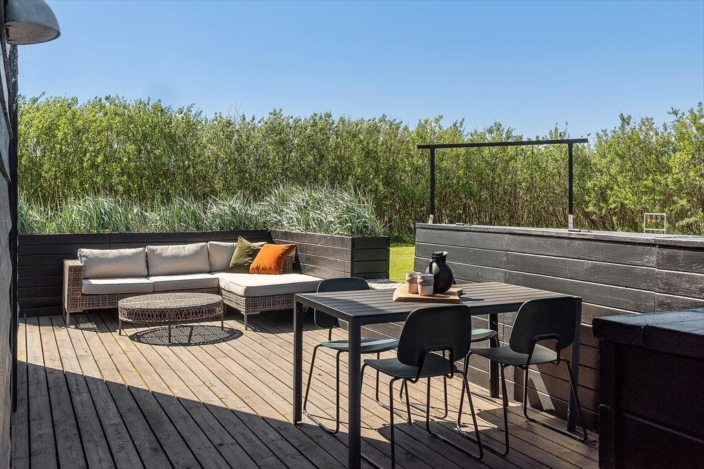 Das große, uneinsehbare Grundstück ist wie gemacht für das Ferienleben unter freiem Himmel. Hier gibt es reichlich Platz zum Spielen und Toben, und während die Kinder sich austoben, können die Erwachsenen eine Tasse Kaffee in der Sonne genießen. Das grüne Areal rund ums Haus bietet viele Möglichkeiten, Windschutz, Sonne oder Schatten zu finden – je nachdem, wonach dir gerade ist. Die Terrasse ist ideal für entspannte Lesestunden oder gemütliche Grillabende in der Abendsonne. Wenn die Dunkelheit hereinbricht und der Sternenhimmel sich zeigt, kann man sich in eine Decke kuscheln und den Geräuschen der stillen Natur lauschen. In dieser Umgebung fällt es leicht, den Alltag hinter sich zu lassen und ganz im Moment zu sein. Hier gibt es keine Nachbarn in der Nähe – nur den Rhythmus der Natur und deine ganz persönliche Urlaubsoase.