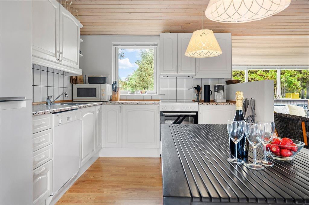 Das Ferienhaus liegt bei Nr. Lyngby, einem alten Fischerhafen nördlich von Løkken. Hier gibt es einen schönen Strand und eine wirklich wunderschöne, steile Küstenlinie, die jedes Jahr viele Touristen anzieht. Mit etwa fünf Kilometern bis nach Løkken kann man problemlos mit dem Fahrrad ins gemütliche Zentrum, zum Hafen und zu den charakteristischen weißen Badehäusern fahren. In erreichbarer Autofahrdistanz gibt es gute Ausflugsziele wie Fårup Sommerland, Family Fun Farm Park, Rubjerg Knude und Børglum Kloster, die alle sowohl für Erwachsene als auch für Kinder spannend sind.