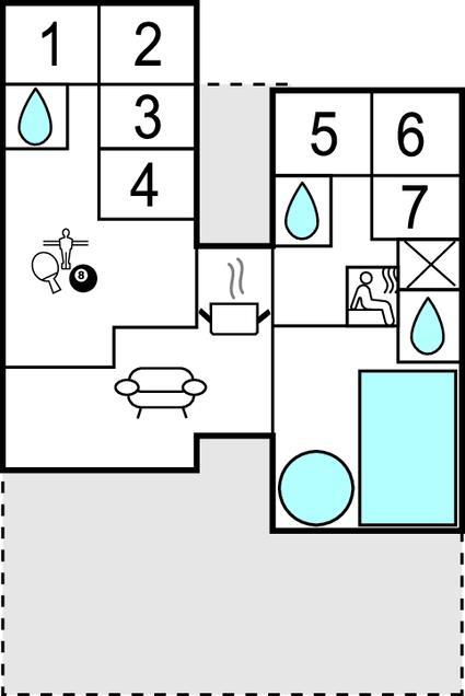 Dieses Ferienhaus bietet zahlreiche Aktivitäten für Groß und Klein. Organisieren Sie spannende Urlaubsturniere im Poolbillard oder Tischfußball und erfrischen Sie sich im hauseigenen Pool, Whirlpool und in der Sauna. Draußen laden das Trampolin, der Spielturm und die Rutsche die kleinen Urlaubsgäste zu vergnüglichen Stunden im Freien ein.