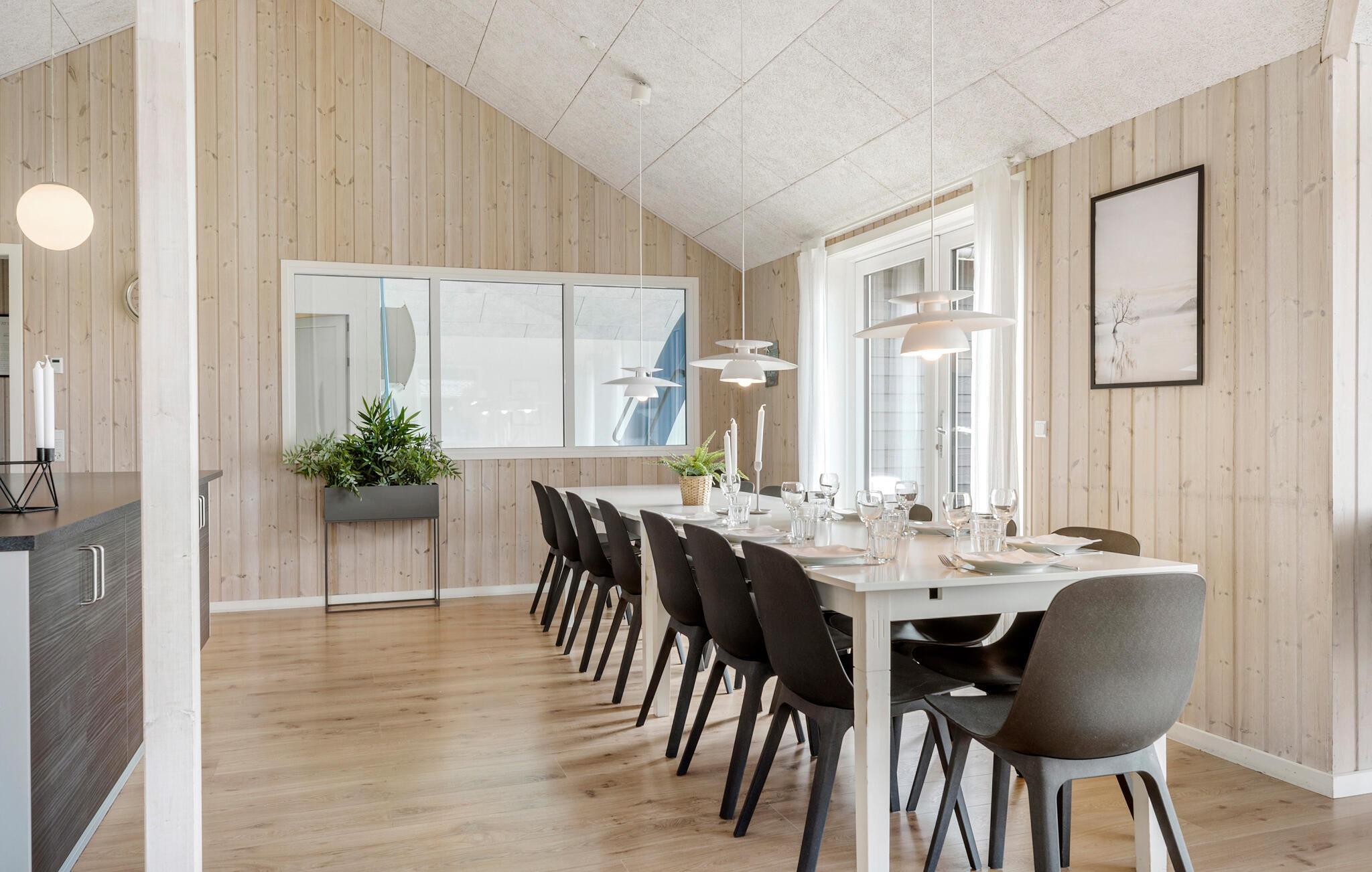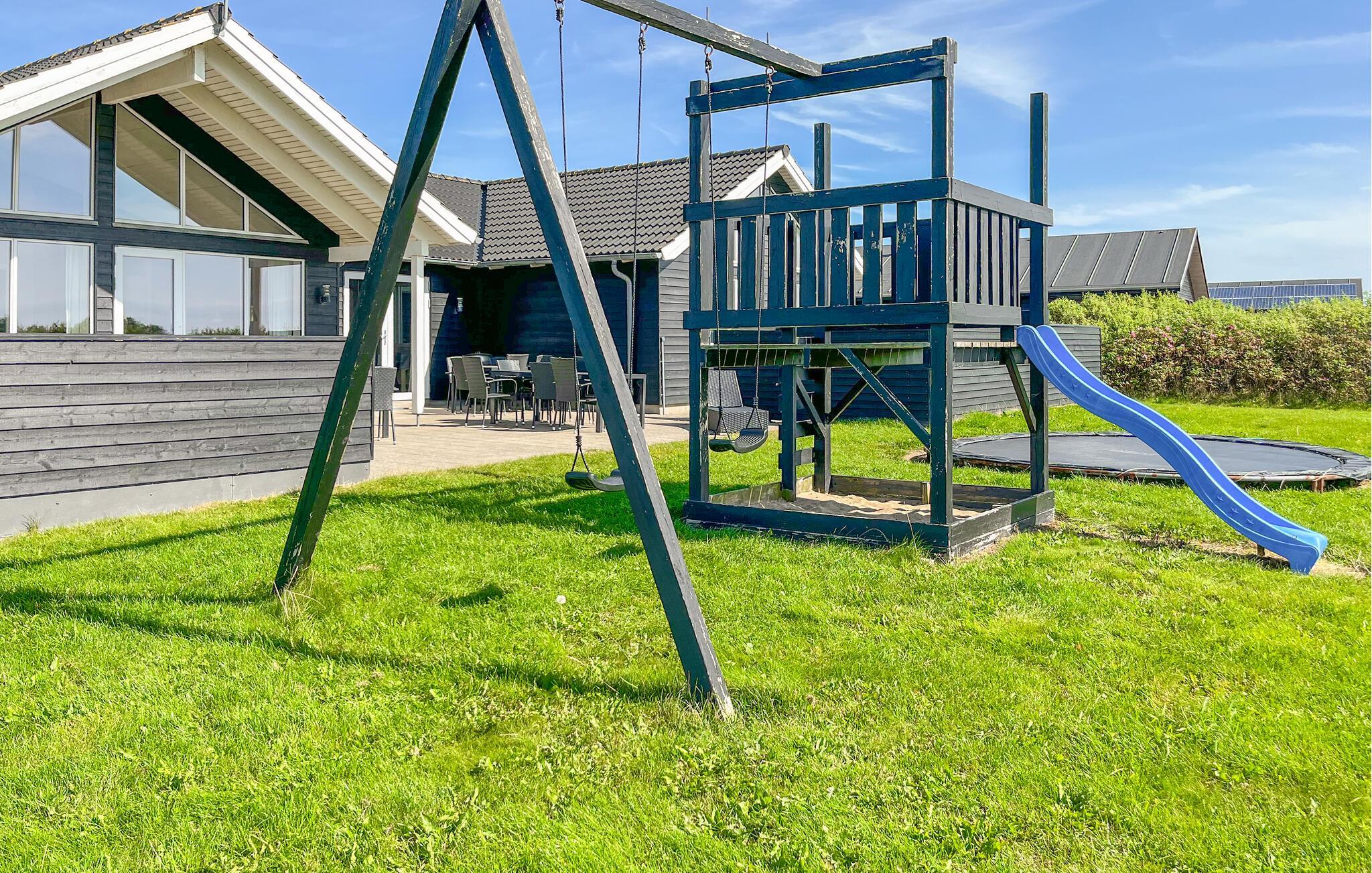 Verbringen Sie eine unvergessliche Auszeit in diesem Ferienhaus mit vielen Aktivitätsmöglichkeiten in der idyllischen Landschaft von Nr. Lyngby, nördlich von Løkken. Ihr Ferienhaus, das Platz für mehrere Familien oder eine größere Reisegruppe bietet, ist der ideale Ort für einen erholsamen Urlaub. Die modern und geräumig gestaltete Küche lädt zum gemeinsamen Kochen ein. Der Wohnbereich besticht durch große Fensterfronten, die viel Tageslicht hereinlassen und eine gemütliche Atmosphäre schaffen. Entspannen Sie auf den bequemen Sofas, spielen Sie Gesellschaftsspiele oder genießen Sie wohlige Abende am Kaminofen.