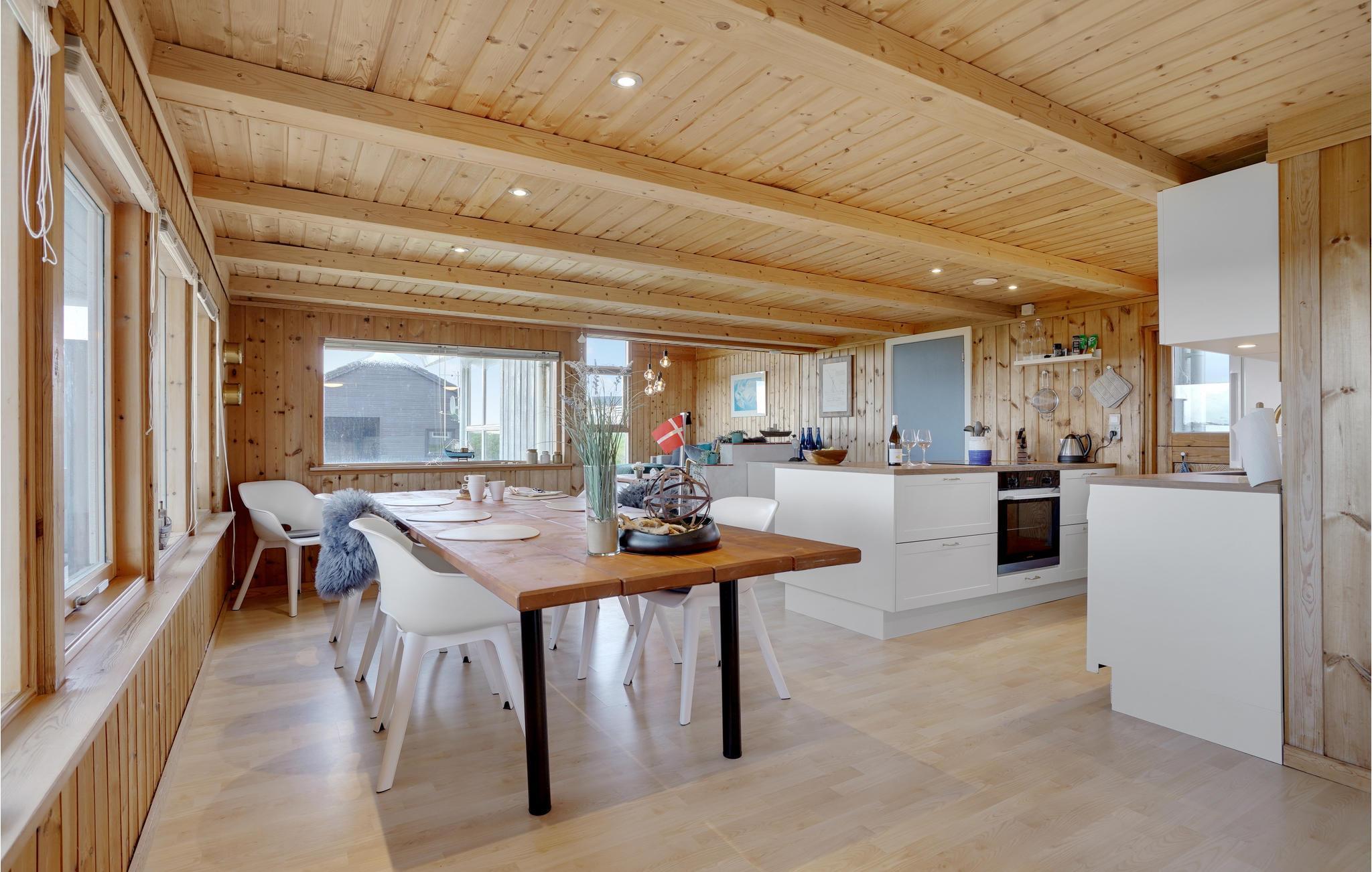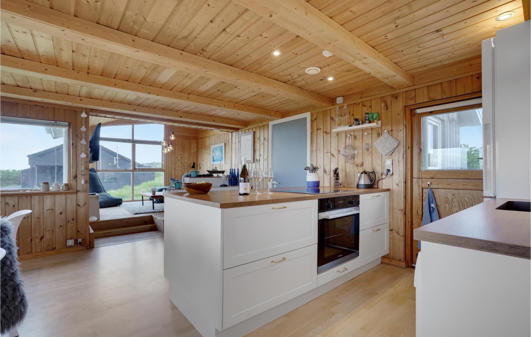 Willkommen in diesem einladenden Ferienhaus, das mit seinen 3 Schlafzimmern und einem Badezimmer Platz für eine Familie bietet. Das Herz des Hauses ist der schöne Wohnbereich mit Sofaecke, Essbereich und offener, moderner Küche, wo Sie gesellige Stunden mit der Familie verbringen können. Vom Wohnzimmer und dem Grundstück bietet sich Ihnen ein schöner Blick auf das Meer. Zur Unterhaltung stehen Ihnen diverse Streaming-Dienste zur Verfügung. Nach einem langen Strandspaziergang lädt die Sauna des Hauses zu Entspannung ein.