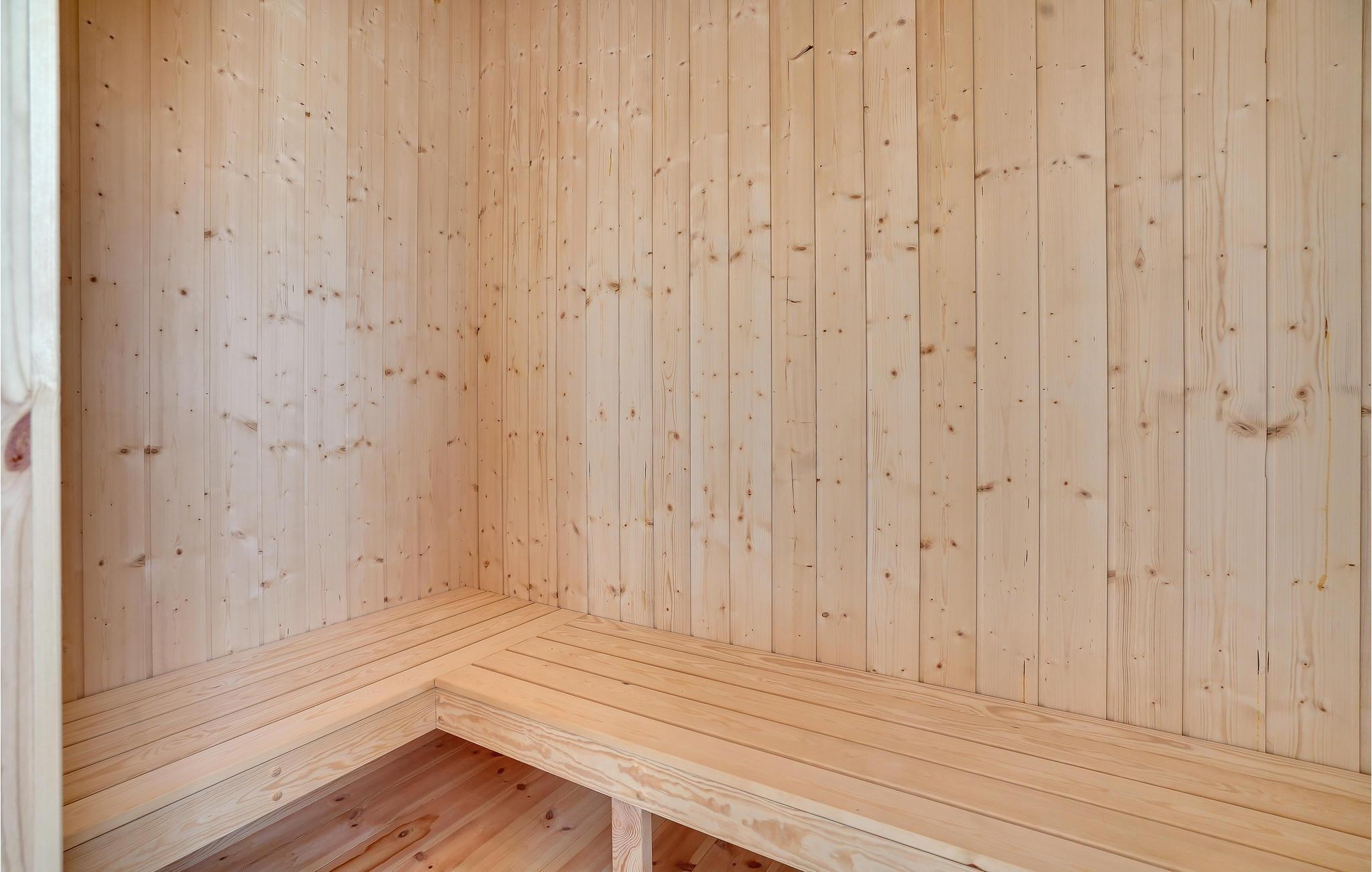 Genießen Sie die Sonne und die frische Luft auf der großen Holzterrasse, auf der Ihnen Gartenmöbel, Sonnenliegen und Grill zur Verfügung stehen. Hier können Sie die ganze Familie zu gemütlichen Grillabenden versammeln und ein Glas kalten Weißwein mit den späten Sonnenstrahlen genießen. Im Garten finden Sie einen weiteren Whirlpool, in dem sich die Erwachsenen entspannen können, während die Kinder auf dem großen Naturgrundstück mit Schaukeln und Sandkasten spielen.