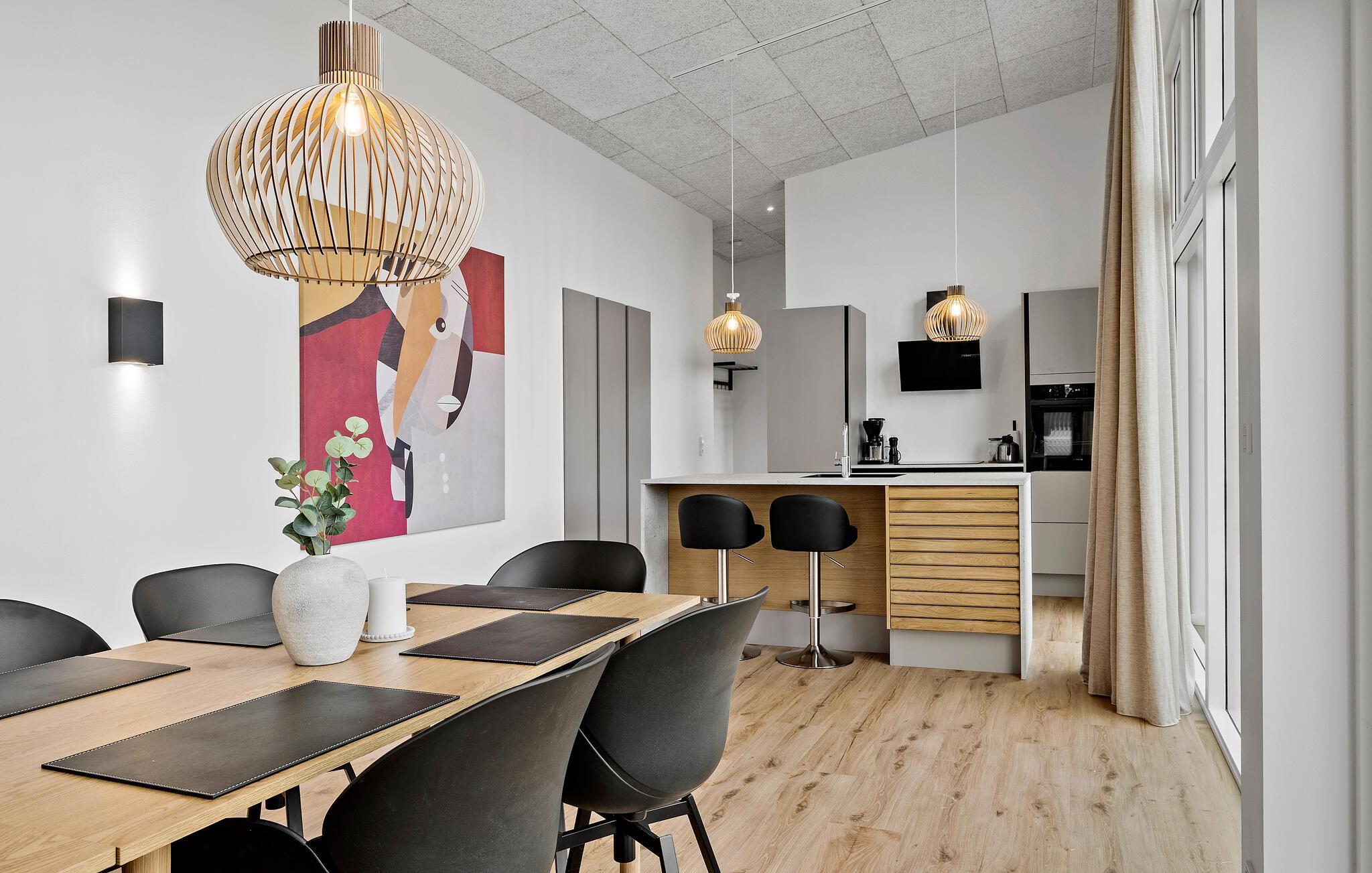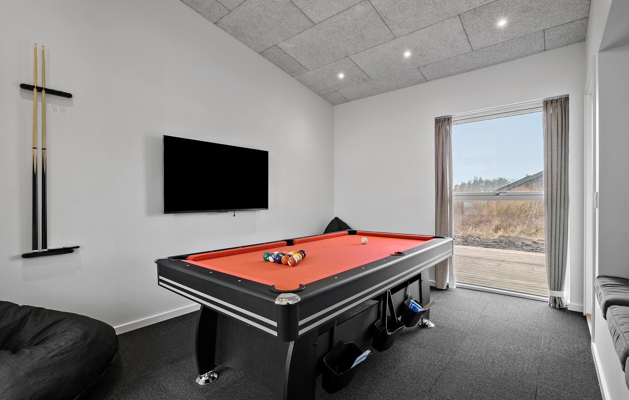 Dieses großzügige Domizil in der idyllischen Umgebung von Nr. Lyngby, nördlich von Løkken, bietet ideale Voraussetzungen für einen Aufenthalt mit mehreren Familien oder Freunden. Die offene, moderne Küche lädt zum gemeinsamen Kochen ein, während der lichtdurchflutete Wohnbereich mit seinen großen Fensterfronten eine angenehme und gemütliche Atmosphäre schafft. Lehnen Sie sich auf den bequemen Sofas zurück und genießen Sie gesellige Spieleabende in guter Gesellschaft.
