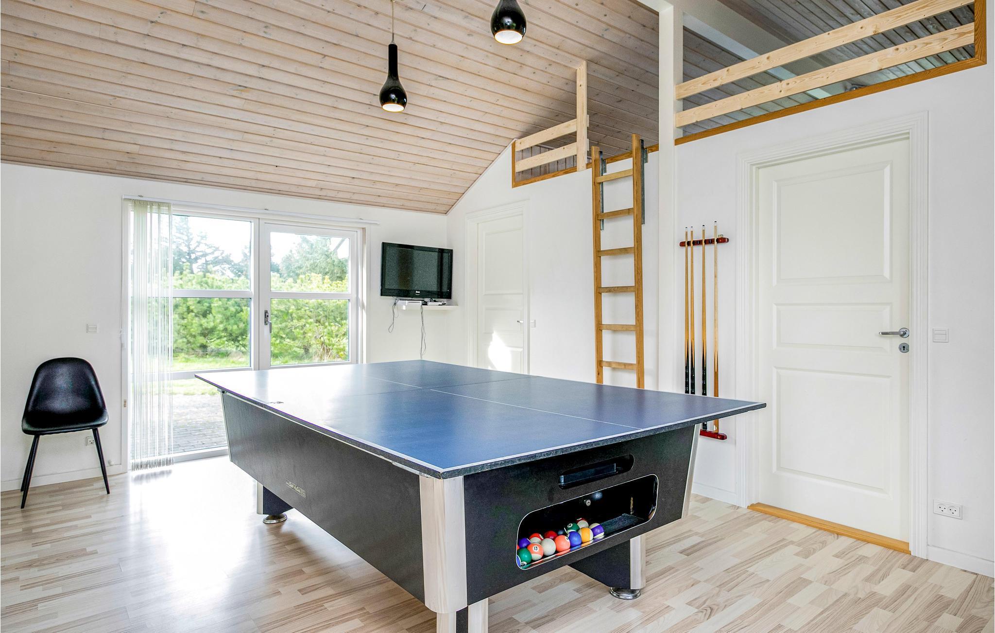 Auf einem gemütlichen Naturgrundstück in einem ruhigen Viertel liegt dieses geräumige Ferienhaus. Es ist sehr zentral im Verhältnis zu den zwei gemütlichen Städten Løkken und Lønstrup und nicht weit vom Strand und der Nordsee gelegen. Das Haus ist optimal, hübsch und u.a. mit einem großen Aktivitätsraum mit Billard und Tischtennis eingerichtet. Das schön möblierte Wohnzimmer mit offenem Gebälk verfügt über große Fensterpartien, die für schöne Lichtverhältnisse sorgen. Die gut ausgestattete Küche ist zum Wohnzimmer hin offen. Von hier gelangen Sie auf eine schöne Terrasse.