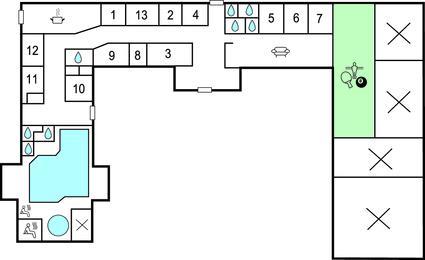 Das Objekt bietet 450 gut ausgestattete m² verteilt auf u.a. 13 Schlafzimmer - alle mit Doppelbett oder 2 Einzelbetten. In der fantastischen Poollandschaft können Sie viele Stunden Spaß und Unterhaltung erleben. Der 85 m² Pool bietet gute Bademöglichkeiten, danach können Sie in den Wellnessraum gehen und sich im Whirlpool für 8 Personen eine herrliche Unterwassermassage gönnen und mit einem entspannenden Ausflug in die Sauna ausklingen lassen. Der Aktivitätsraum des Hauses bietet Billard, Tischtennis und Tischfußball, wo Sie Familie und Freunde zu einem Wettbewerb herausfordern können. Im Freien gibt es einen herrlichen Innenhof und eine große Rasenfläche mit viel Platz zum Spielen. Die Küche ist gut ausgestattet und macht unter anderem mit zwei Herden, zwei Backöfen, zwei Geschirrspülern und zwei Kühlschränken das Kochen für größere Gruppen leicht. Das Haus verfügt außerdem über 8 Toiletten, 5 Duschen und eine weitere Dusche im Poolbereich.