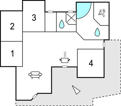 Badezimmer 3m2 (nr. 2) - WC. Warmes und kaltes Wasser. Dusche