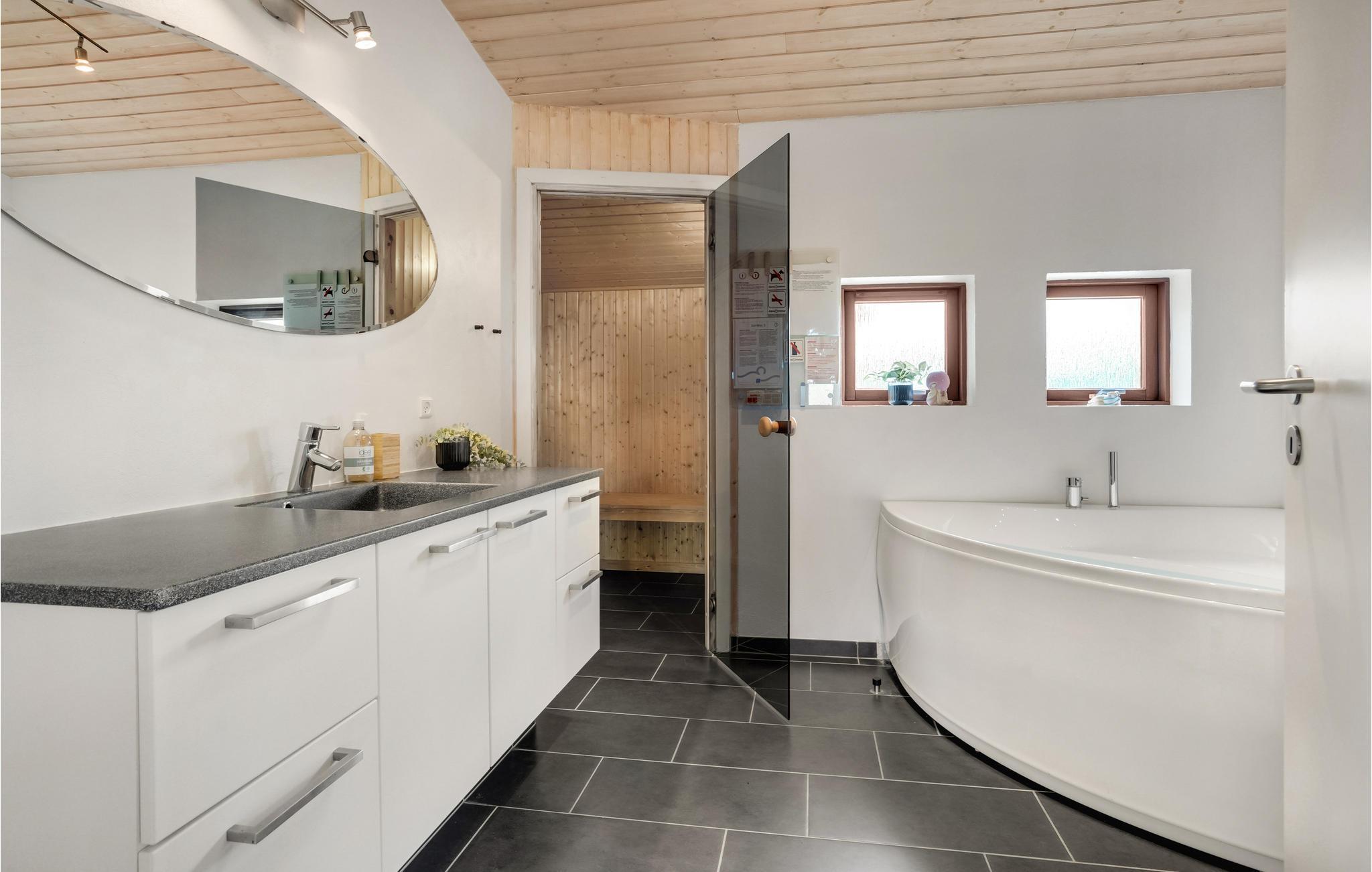Modernes, energiesparendes Ferienhaus mit Sauna, Whirlpool und Meerblick in Nr. Lyngby, Dänemark.