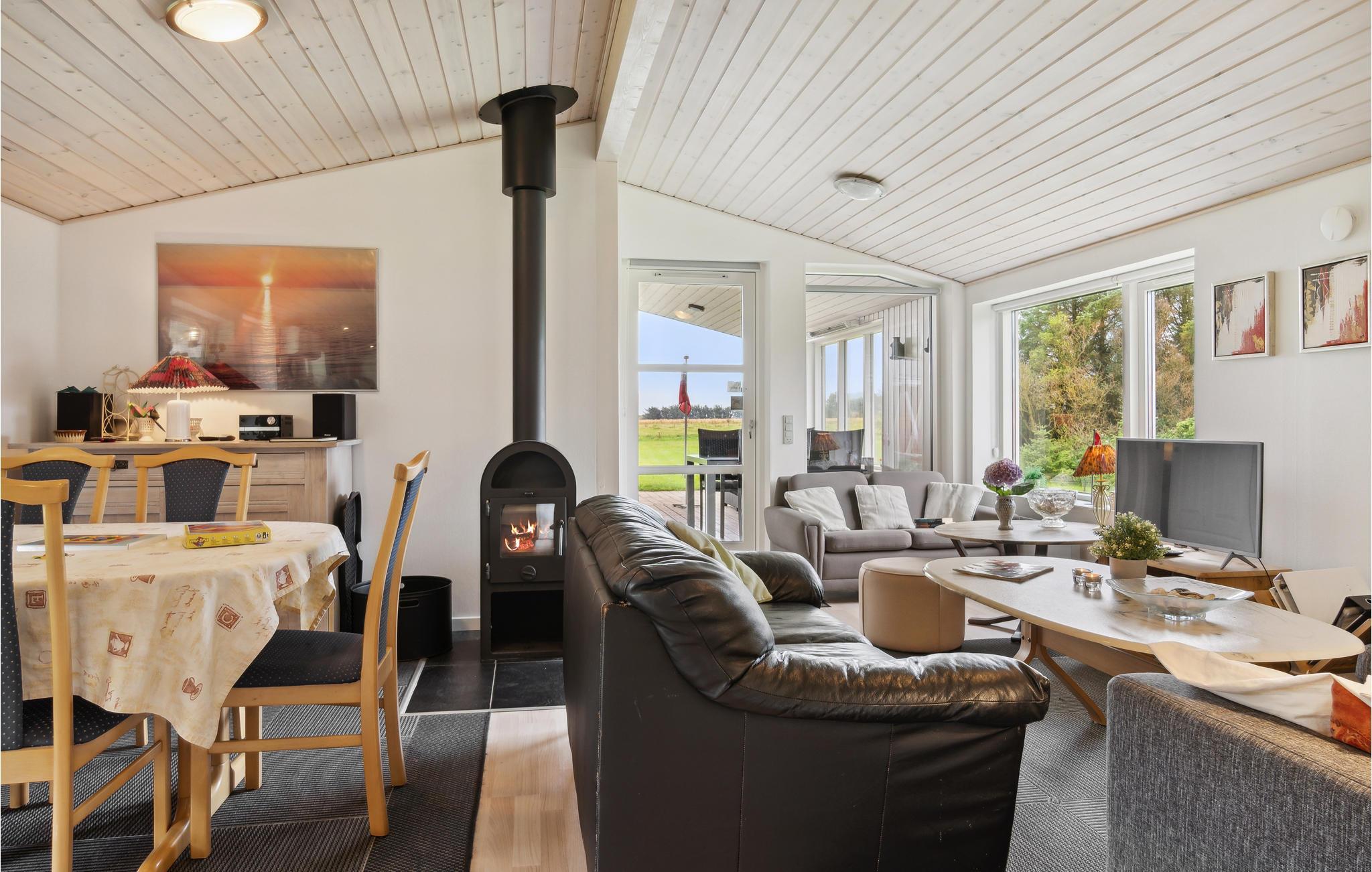 Renoviertes Ferienhaus nahe dem Strand von Nr. Lyngby mit Terrasse, Kamin und moderner Ausstattung.