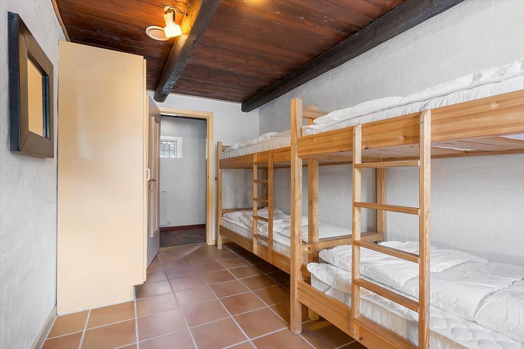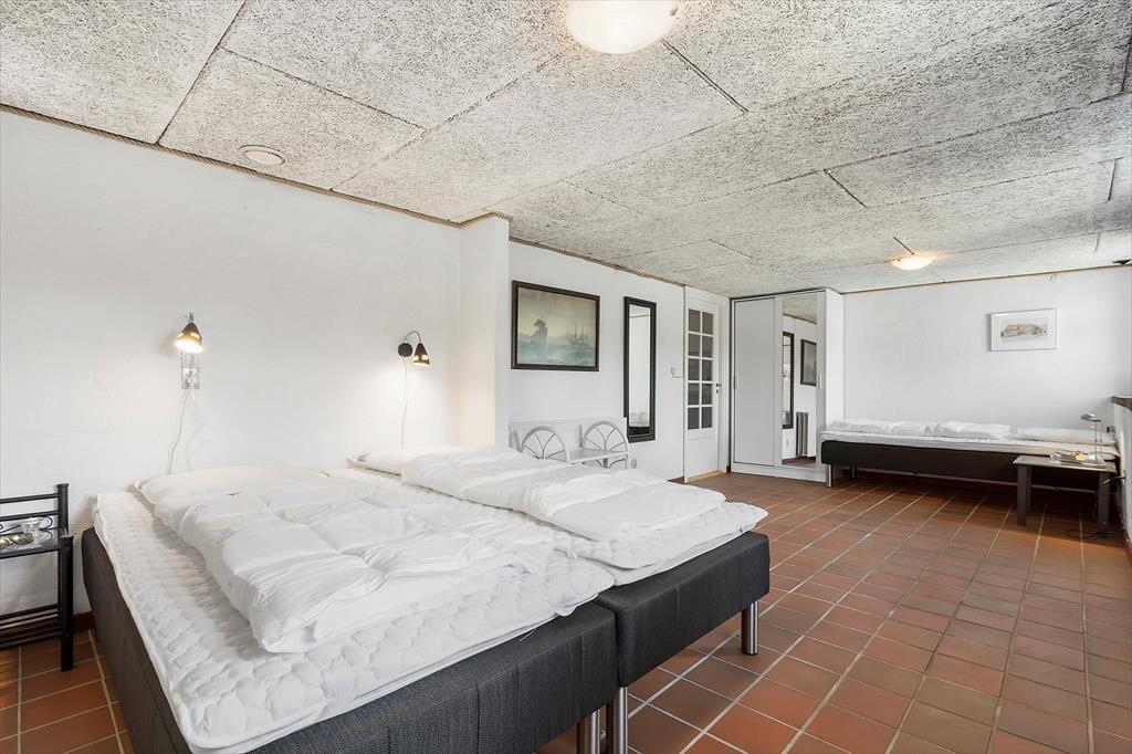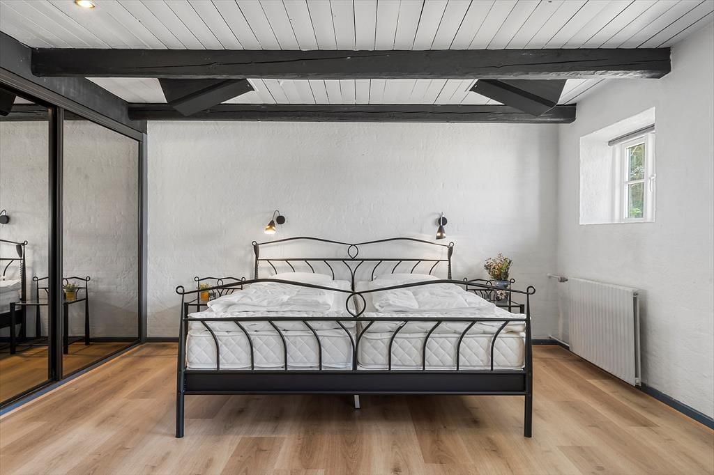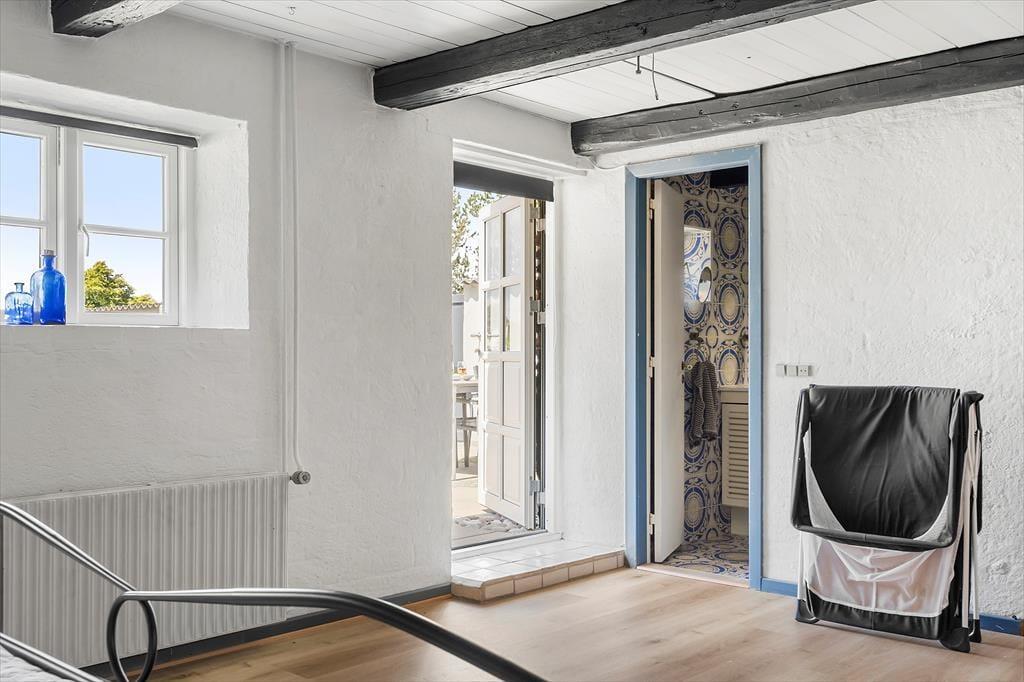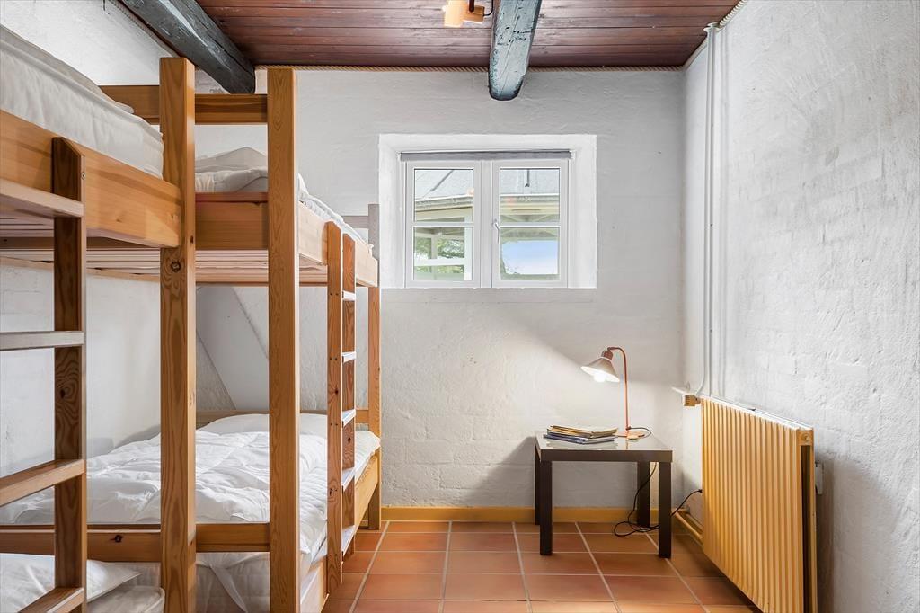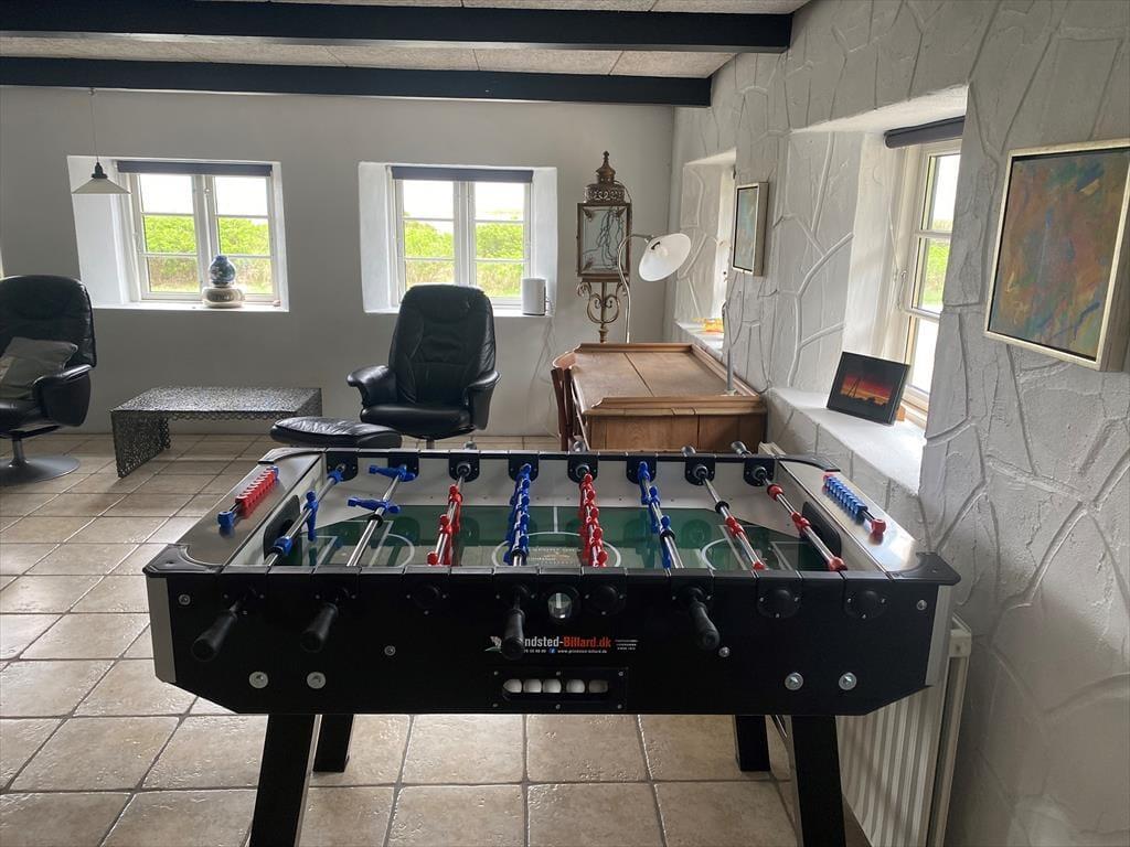 Klitgården liegt wunderschön in der Landschaft, und wenn du im Wohnzimmer sitzt, kannst du durch die Sprossenfenster des Wohnzimmers auf die offenen Felder und den Ringkøbing Fjord im Osten schauen. Fast der gesamte Südflügel besteht aus einer gemütlichen Wohnlandschaft mit offener Küche, Esszimmer und Wohnzimmer. Es gibt einen Air-Hockey-Tisch und eine gemütliche Sofaecke, und es gibt viel Platz, um gemeinsam in der Küche zu kochen und viel Zeit mit Essen, Lachen und Plaudern an den Esstischen zu verbringen. Die schönen Holzöfen, die nur der Dekoration dienen, zeugen von der langen Geschichte des Hauses in dem ansonsten wunderschön modernisierten Raum. Dass ihr in einem historischen Gebäude wohnt, sieht man auch an der Deckenhöhe, denn an manchen Stellen sind es nur 2 Meter bis zu den Querbalken - und natürlich noch ein bisschen höher bis zur Decke selbst. Es gibt auch neue Verbesserungen im Haus, zum Beispiel haben zwei der vier Schlafzimmer kürzlich schöne Holzböden und gute Betten bekommen. Was den Komfort angeht, so ist eines der Schlafzimmer mit einem Doppelstockbett ausgestattet und es gibt eine Sauna im Haus, während die drei guten Badezimmer das Duschen am Morgen zu einem angenehmen Erlebnis machen.