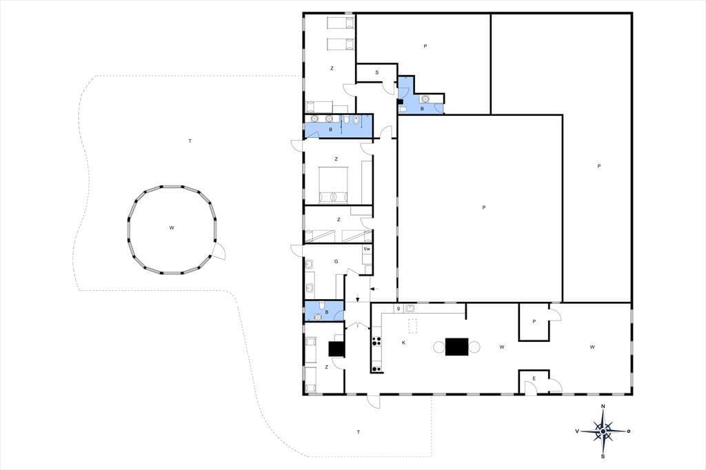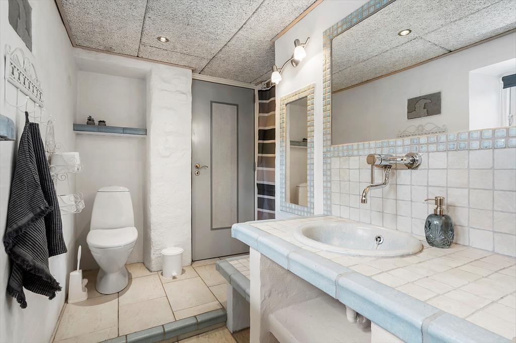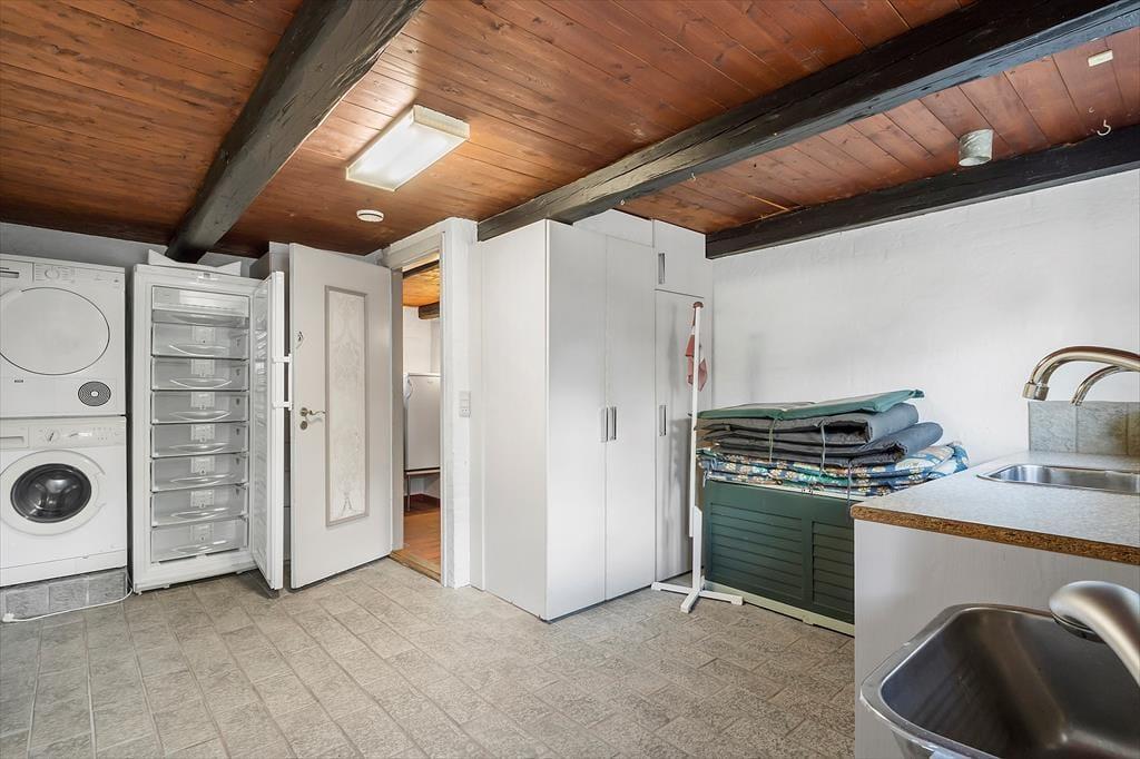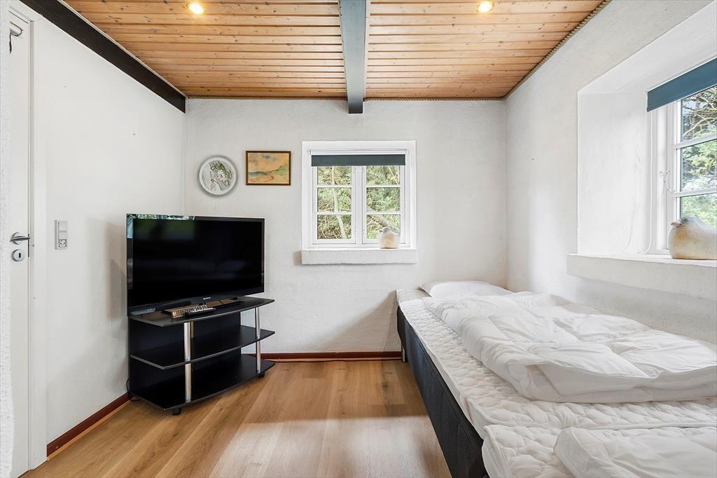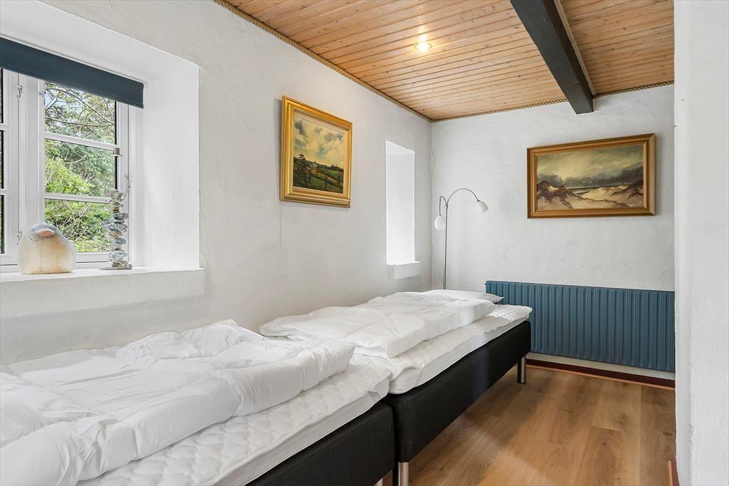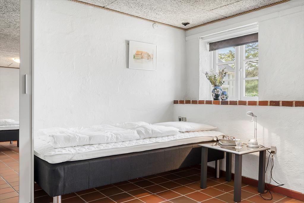 Klitgården liegt wunderschön in der Landschaft, und wenn du im Wohnzimmer sitzt, kannst du durch die Sprossenfenster des Wohnzimmers auf die offenen Felder und den Ringkøbing Fjord im Osten schauen. Fast der gesamte Südflügel besteht aus einer gemütlichen Wohnlandschaft mit offener Küche, Esszimmer und Wohnzimmer. Es gibt einen Air-Hockey-Tisch und eine gemütliche Sofaecke, und es gibt viel Platz, um gemeinsam in der Küche zu kochen und viel Zeit mit Essen, Lachen und Plaudern an den Esstischen zu verbringen. Die schönen Holzöfen, die nur der Dekoration dienen, zeugen von der langen Geschichte des Hauses in dem ansonsten wunderschön modernisierten Raum. Dass ihr in einem historischen Gebäude wohnt, sieht man auch an der Deckenhöhe, denn an manchen Stellen sind es nur 2 Meter bis zu den Querbalken - und natürlich noch ein bisschen höher bis zur Decke selbst. Es gibt auch neue Verbesserungen im Haus, zum Beispiel haben zwei der vier Schlafzimmer kürzlich schöne Holzböden und gute Betten bekommen. Was den Komfort angeht, so ist eines der Schlafzimmer mit einem Doppelstockbett ausgestattet und es gibt eine Sauna im Haus, während die drei guten Badezimmer das Duschen am Morgen zu einem angenehmen Erlebnis machen.