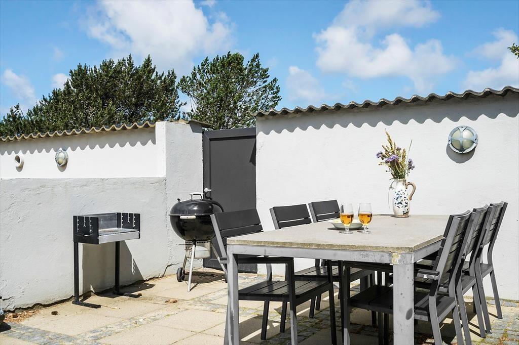 Das Ferienhaus verfügt über einen großen Außenbereich, in dem ihr das gute Sommerwetter so richtig genießen könnt. Eine große Terrasse erstreckt sich nach Westen - direkt an der offenen Landschaft und mit Blick auf den schönen Leuchtturm von Lyngvig. Eine Mauer schirmt dich von den Nachbarn ab, und auch die hohen Bäume auf dem Naturgrundstück tragen zum Gefühl der Privatsphäre bei, so dass du dich in der Abgeschiedenheit sonnen, grillen und spielen kannst. Wenn es zu kühl ist, um stundenlang im Freien zu sitzen, kannst du das Urlaubsleben in den Pavillon verlegen. Es kann magisch sein, hier zu sitzen, wenn die Sonne hinter den Dünen untergeht und den Himmel in eine Vielzahl wunderschöner Farbtöne taucht.