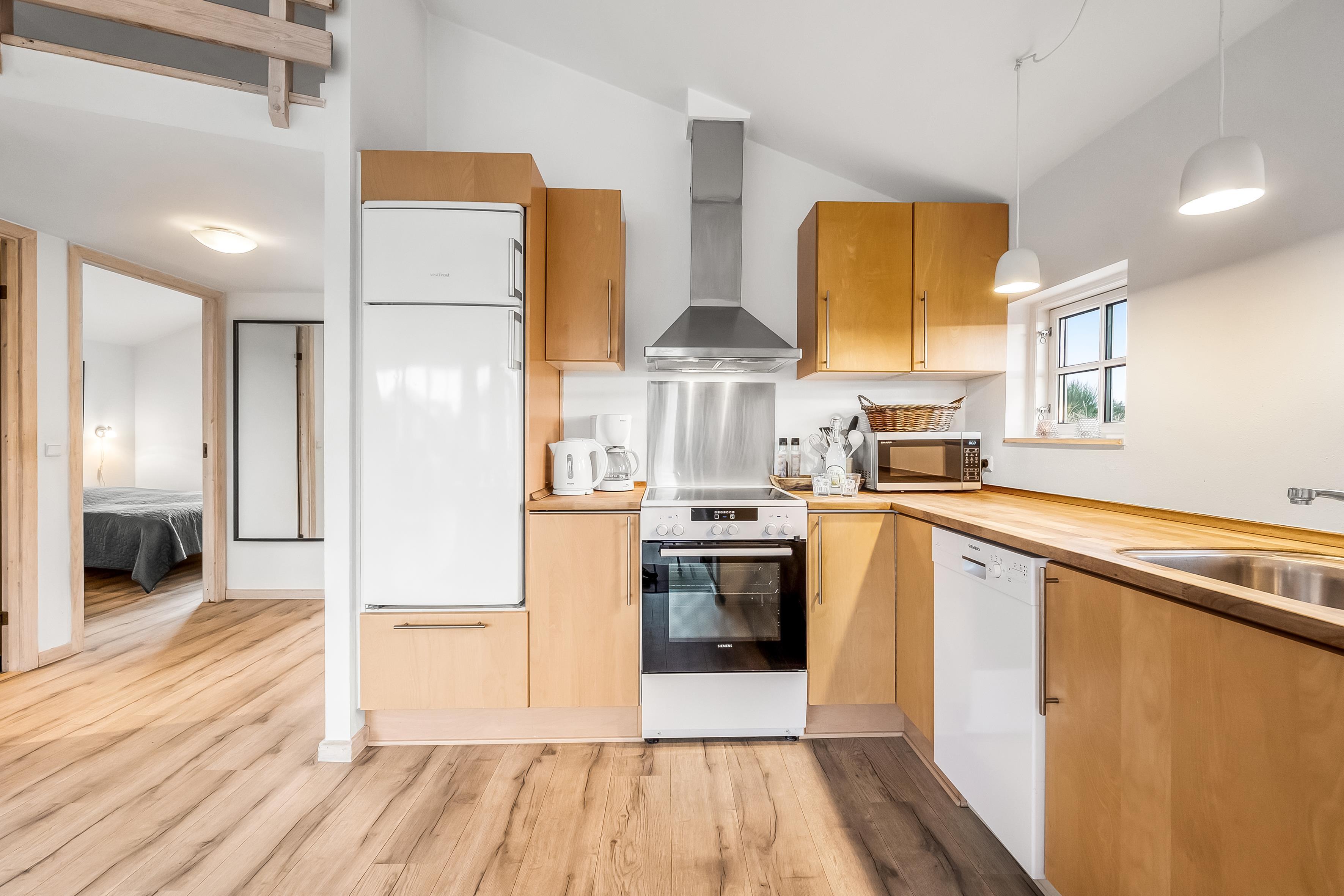 Das Haus verfügt über 3 Schlafzimmer, davon 2 mit Doppelbett und 1 mit Etagenbett, zusätzlich sowie gibt es einen Dachboden, der einen zusätzlichen Schlafplatz bietet. Die offene Wohn-/Küchenkombination schafft eine gemütliche Atmosphäre - perfekt für gesellige Stunden mit der Familie, Freunden oder einfach zu Zweit. Genießt die Wärme des Kaminofens an kühlen Abenden und hört das Knistern des Holzes, wenn die Flammen darin lodern. Das Ferienhaus ist mit einem Fernseher und Satellitenschüssel ausgestattet. Haltet mit dem kostenfreien Wlan die Verbindung in die Heimat aufrecht um Erlebnisse zu teilen, auf dem Laufenden zu bleiben oder im Internet zu surfen. Das Badezimmer ist mit Dusche, Fußbodenheizung und einladenden Whirlpool ausgestattet.