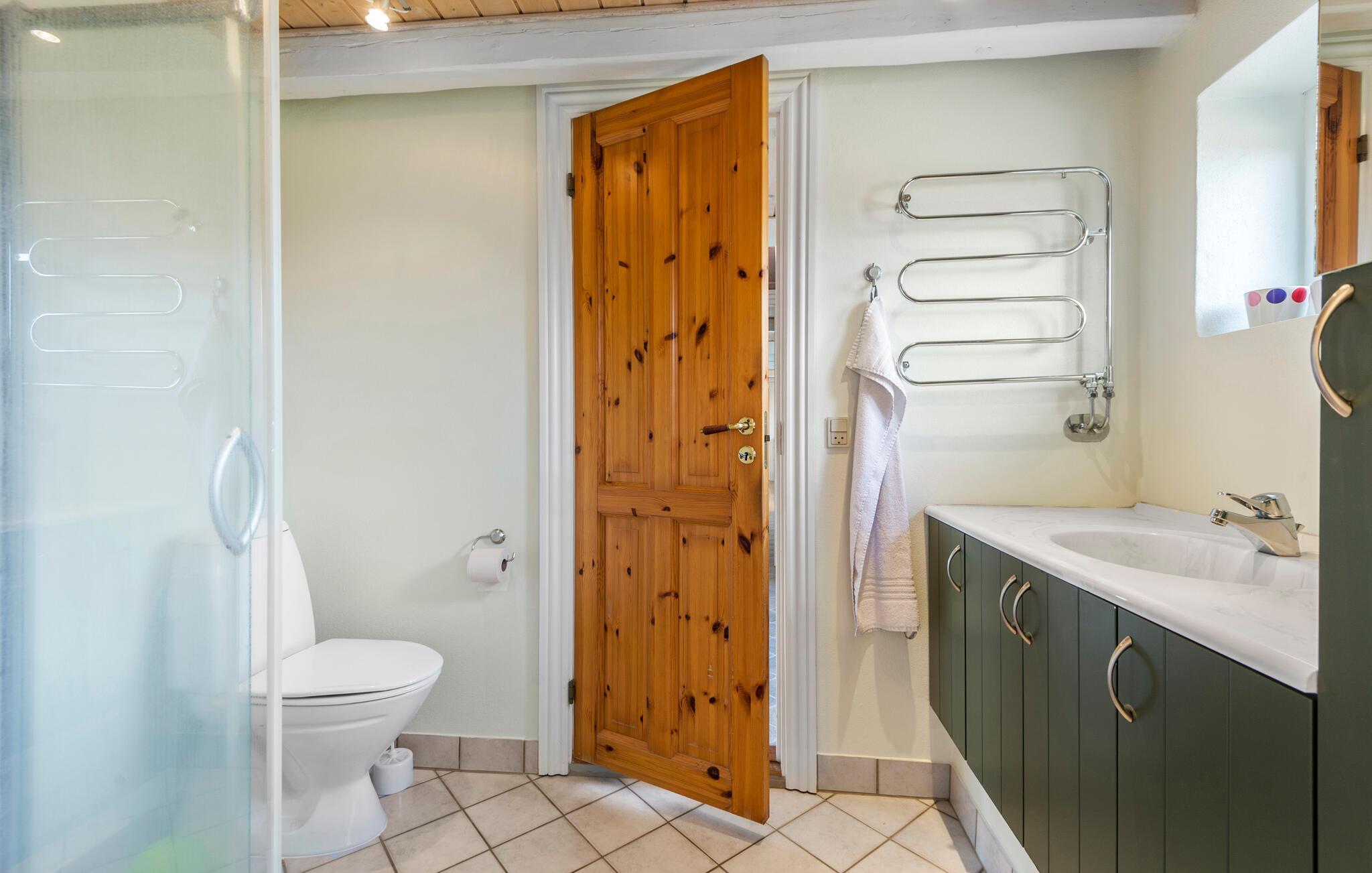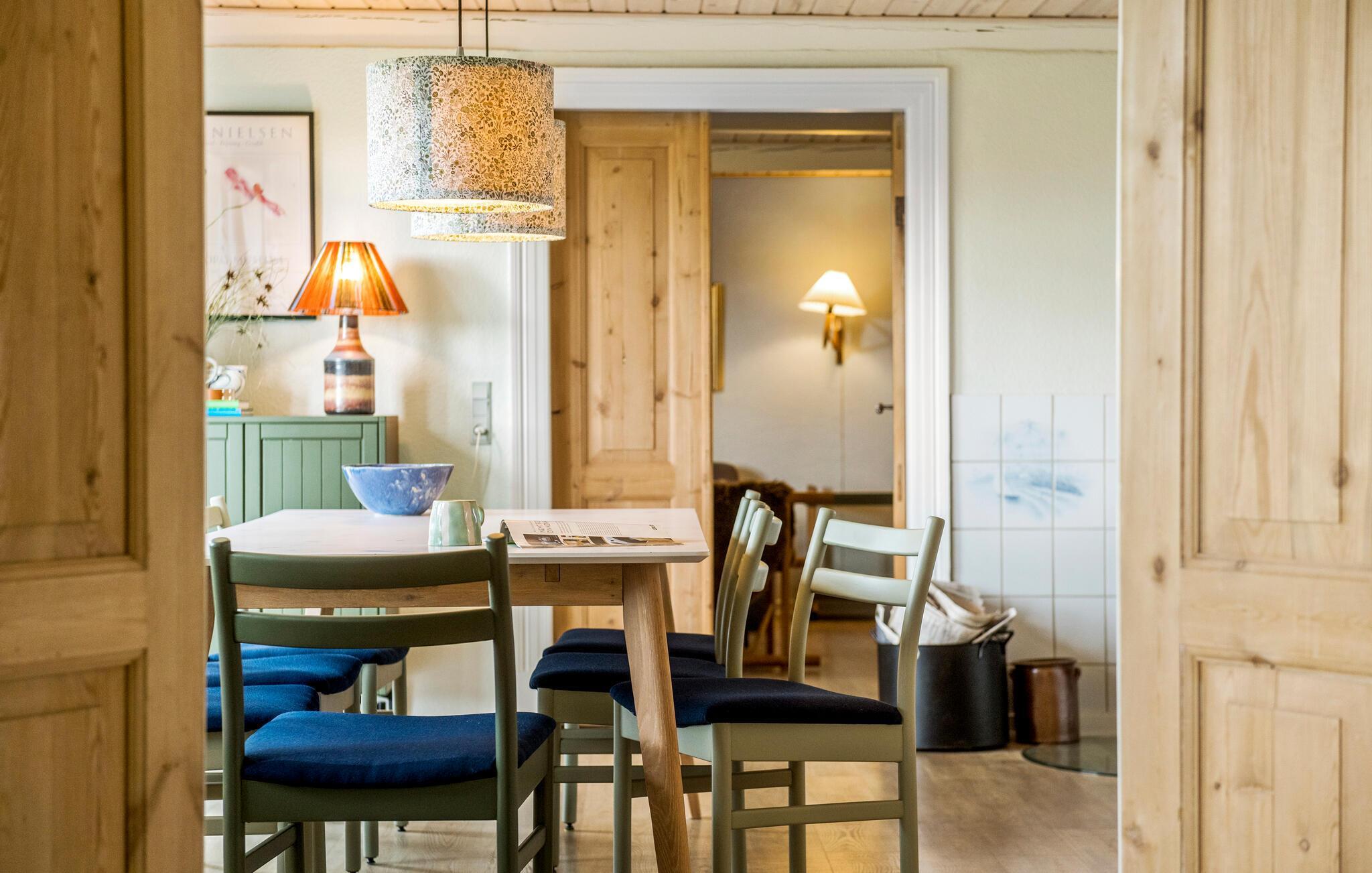 Willkommen in dem geräumigen Haus, das Sie in idealer Lage für einen erholsamen Urlaub mit tollen Aktivitäten nur eine kurze Fahrt von Fjord und Meer entfernt empfängt. Mit hellen Räumen und der wohnlichen Einrichtung ist es die ideale Basis für eine schöne Auszeit auch mit der größeren Familie. Entspannen Sie nach Ihren Ausflügen im Whirlpool, spielen Sie eine Partie Tischtennis oder machen Sie es sich im Wohnzimmer bequem und sorgen Sie mit einem Feuer im Kaminofen für eine gemütliche Stimmung.
