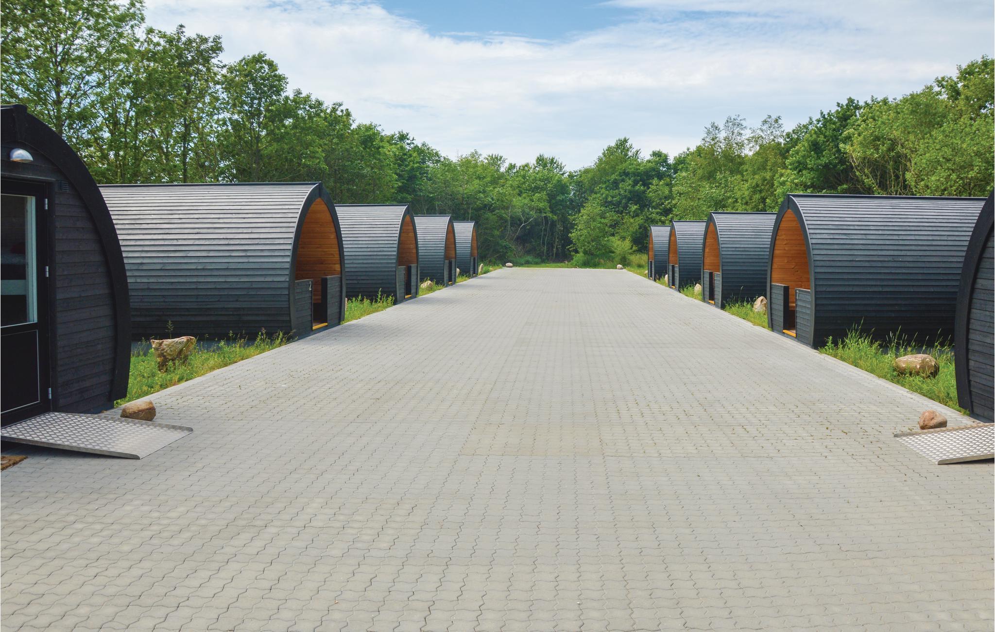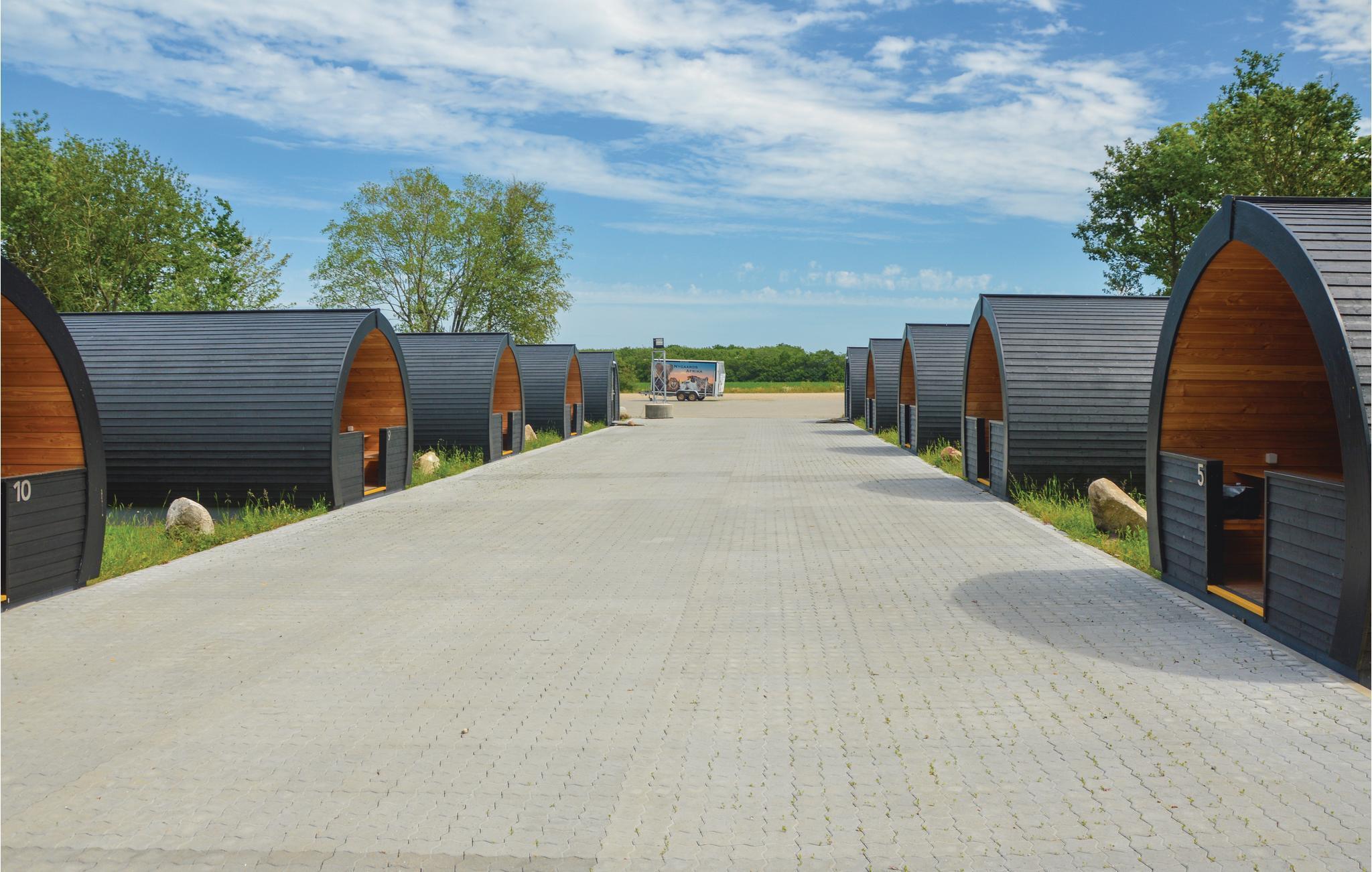 In kurzem Abstand zu Nr. Nebel liegt diese Ferienanlage. Die ungewöhnlichen Hütten, die in einer Zehnergruppe angelegt sind, fallen mit ihrer zylinderförmigen Gestaltung aus dem Rahmen.