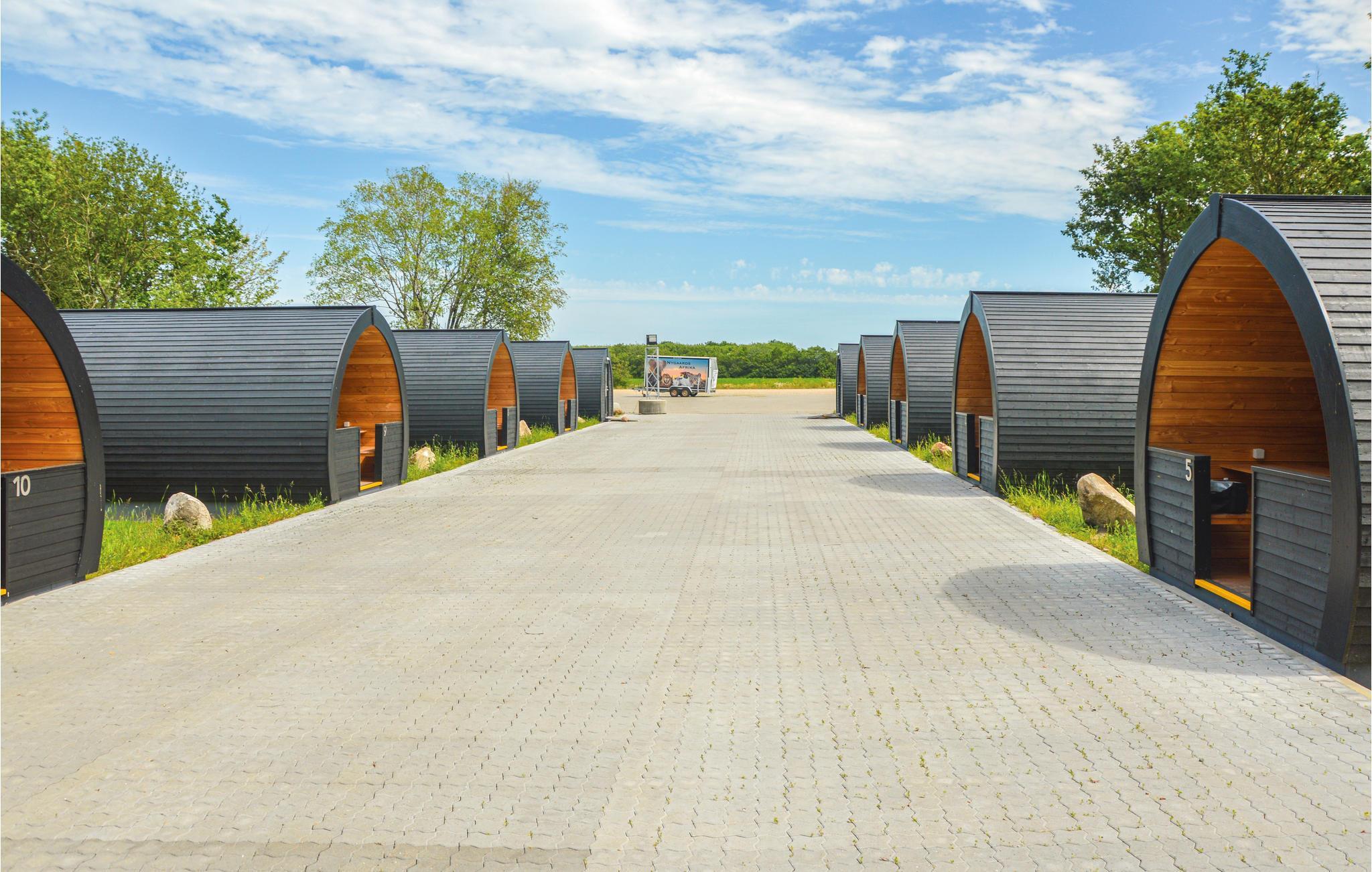 Gemütliche tonnenförmige Hütten in Nørre Nebel bieten modernen Komfort und Nähe zum Jagdmuseum und Westjütlands Stränden.