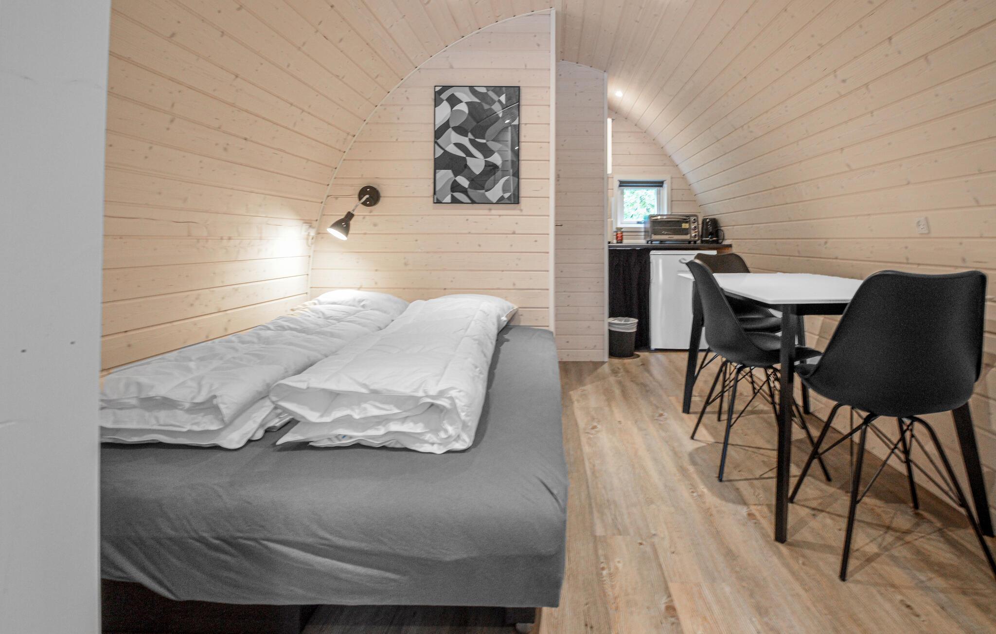 Gemütliche tonnenförmige Hütten in Dänemark mit modernem Design, ideal zum Entspannen und Entdecken der Natur.