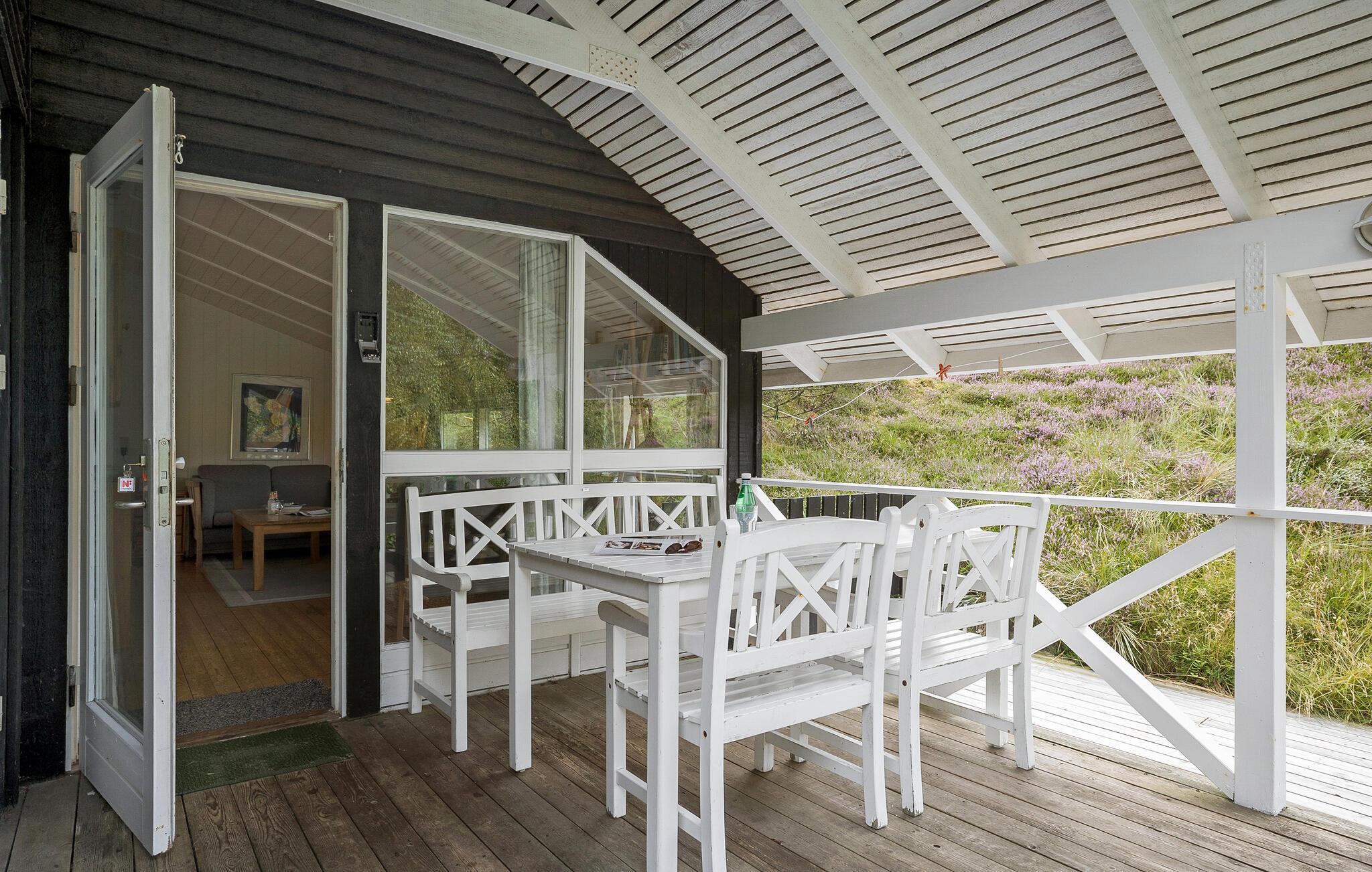 Zum Haus gehört eine gute Terrasse, auf der Sie in einer Ebene unter einer Überdachung sitzen können, während eine andere Ebene eine abgeschiedene Holzterrasse bietet, auf der Sie die Sonne genießen können. Mit der Lage direkt an den Dünen bietet dieses Ferienhaus viel Privatsphäre und ideale Bedingungen für pure Entspannung. Ein kleiner Pfad führt vom Parkplatz zum Haus.