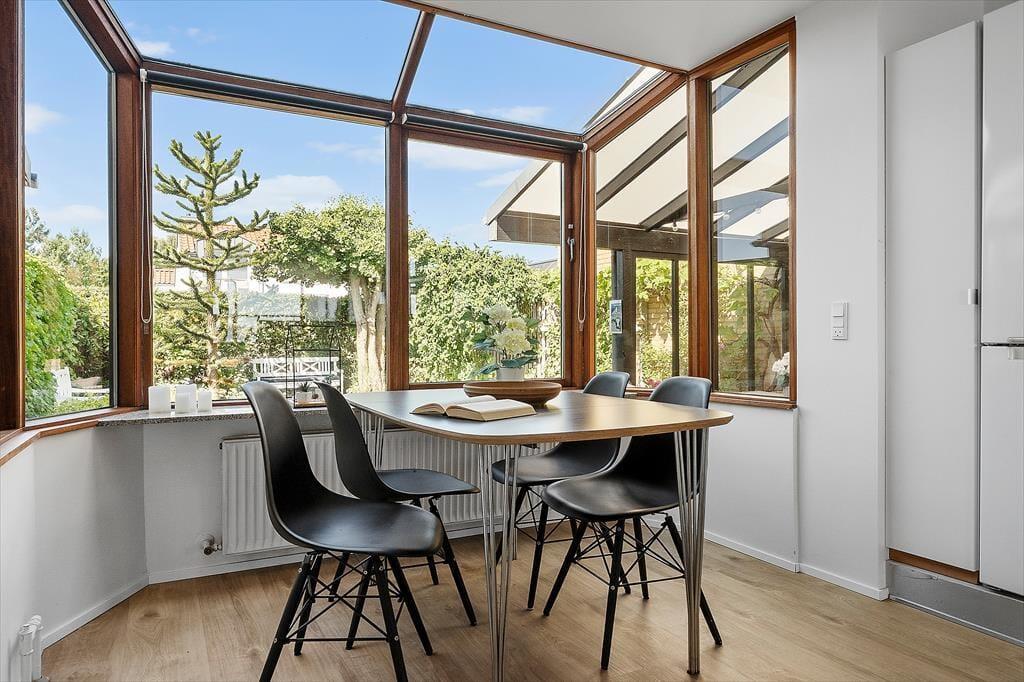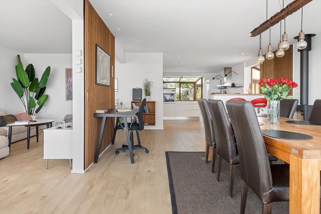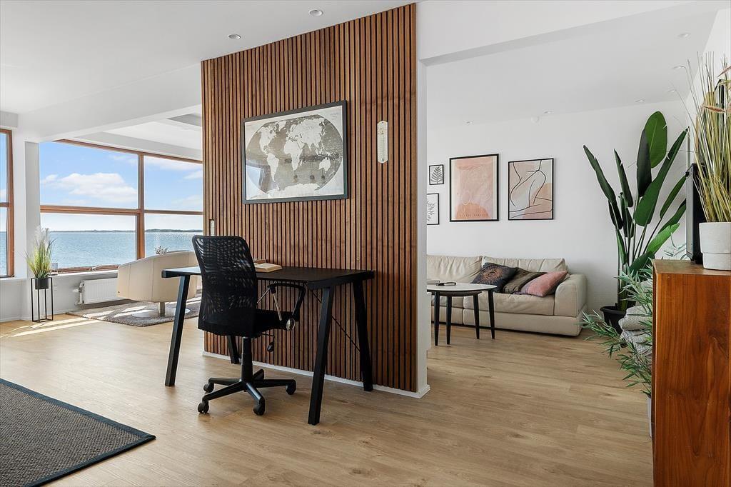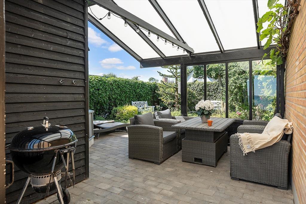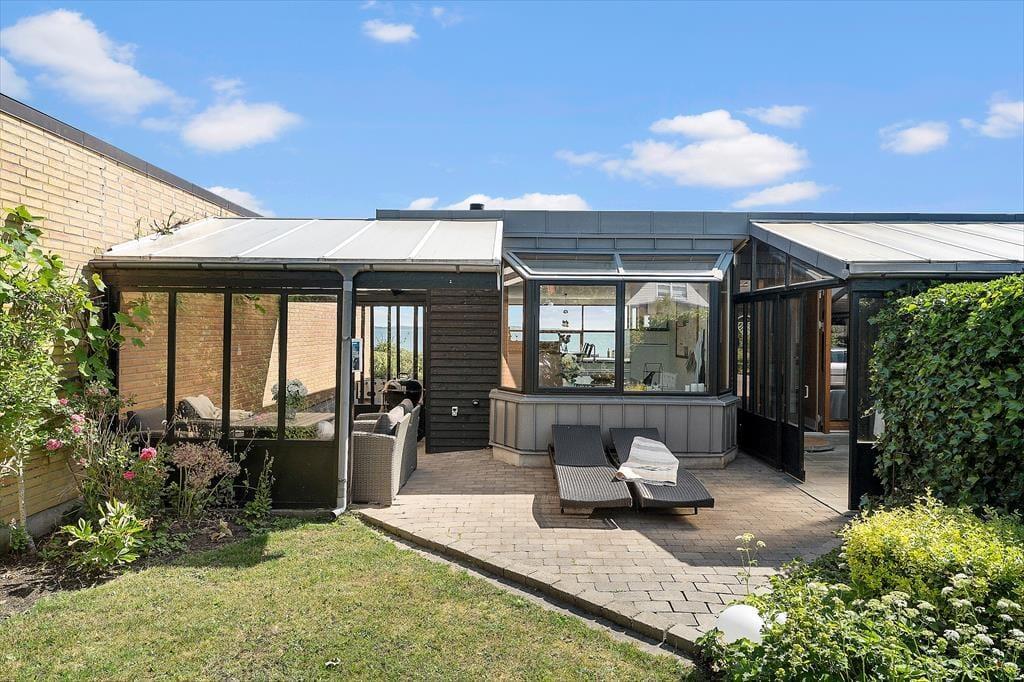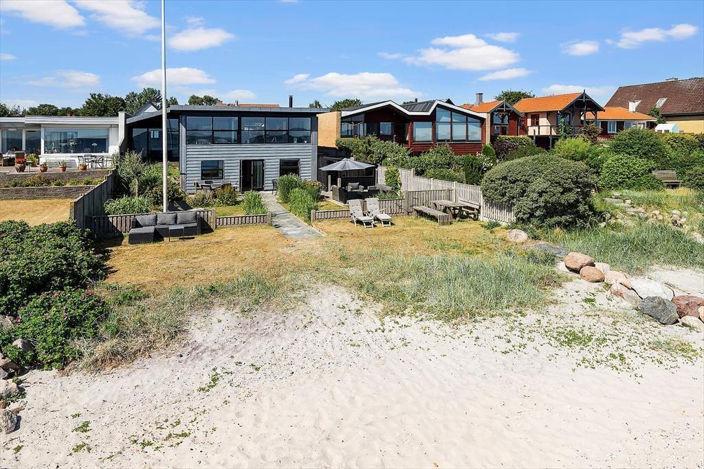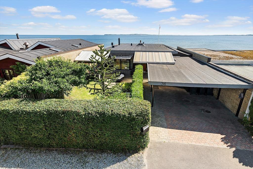 Im Vorgarten treffen Sie auf einen gen Westen ausgerichteten Wintergarten, eine überdachte Terrasse und ein Carport. Obwohl es richtig schön ist, hier entspannte und gemütliche Momente zu verleben, wird es Sie wahrscheinlich dennoch meist unwiderstehlich auf die Ostseite des Hauses ziehen, wo Sie nicht nur ein wunderschöner Ausblick, sondern auch ein richtig schöner Garten mit mehreren Terrassenarealen und selbstverständlich auch Ihr privater Strand erwarten. Hier stehen ein Paddelboard und ein Ruderboot zur freien Verfügung, damit Sie auch die Momente im Freien uneingeschränkt geniessen können. Auf diesem Grundstück erleben Sie traumhaft schöne Sonnenaufgänge. Die Abendstunden genießen Sie sicherlich gerne an der Bar im "Strandhuset", bei dem es sich um eine überdachte Terrasse handelt, die auch ein sogenanntes Beachbed umfasst, auf dem Sie im Liegen den Ausblick auf das schimmernde Wasser des Fjords genießen.